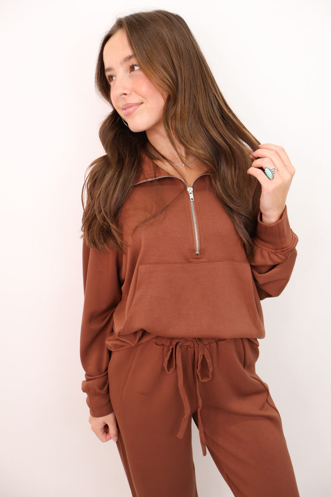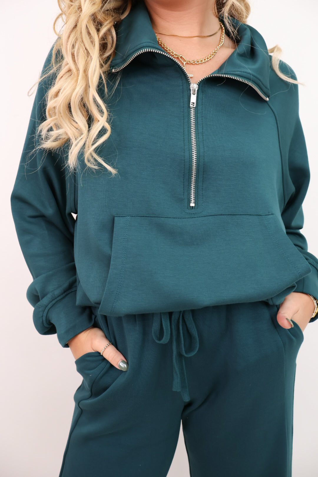 Soft Luxe Quarter Zip Pants Set - Deep Green