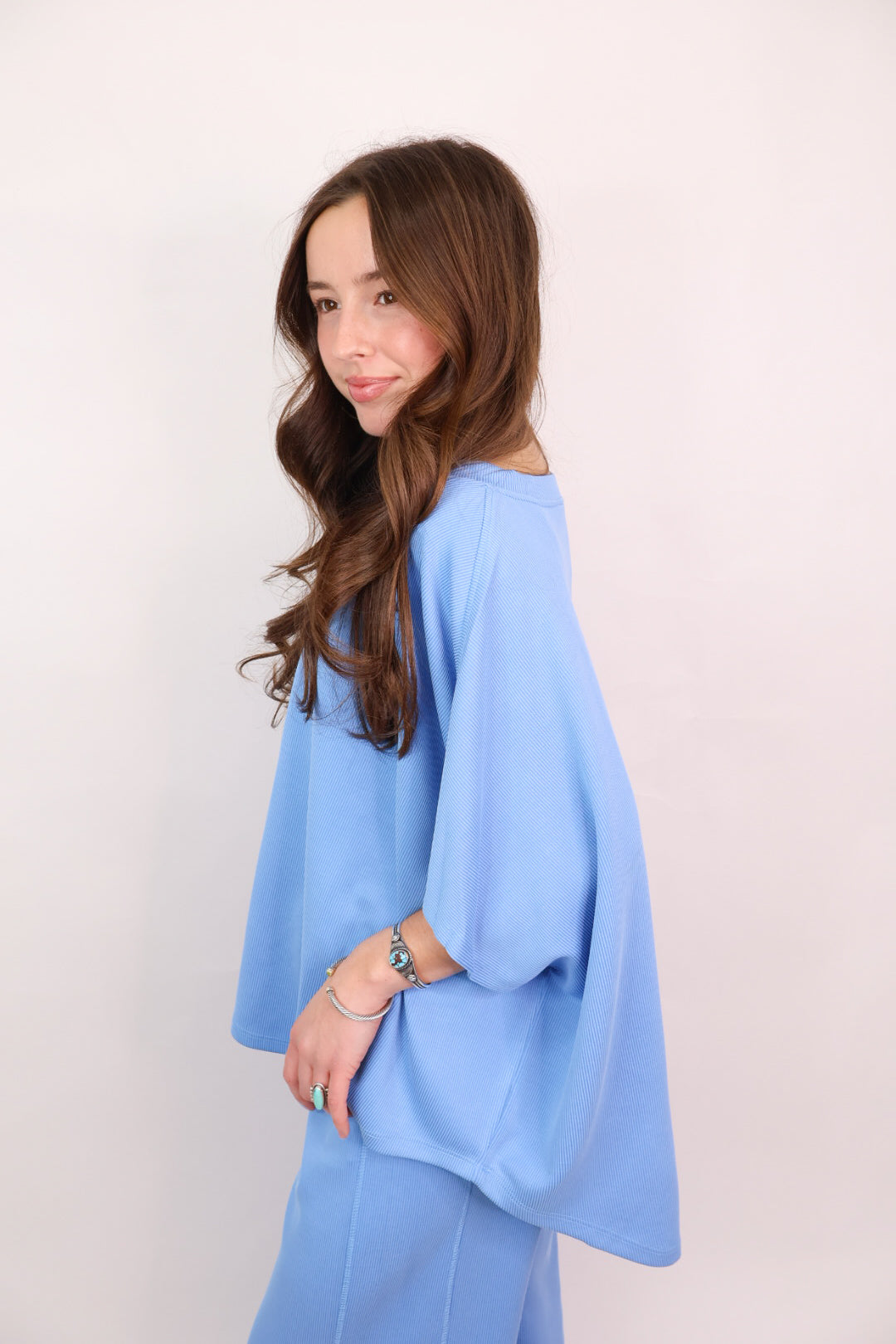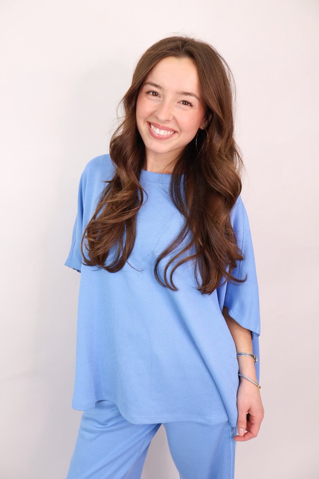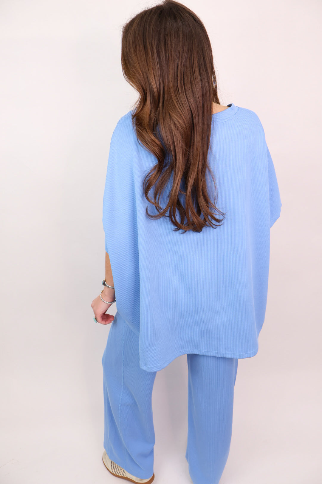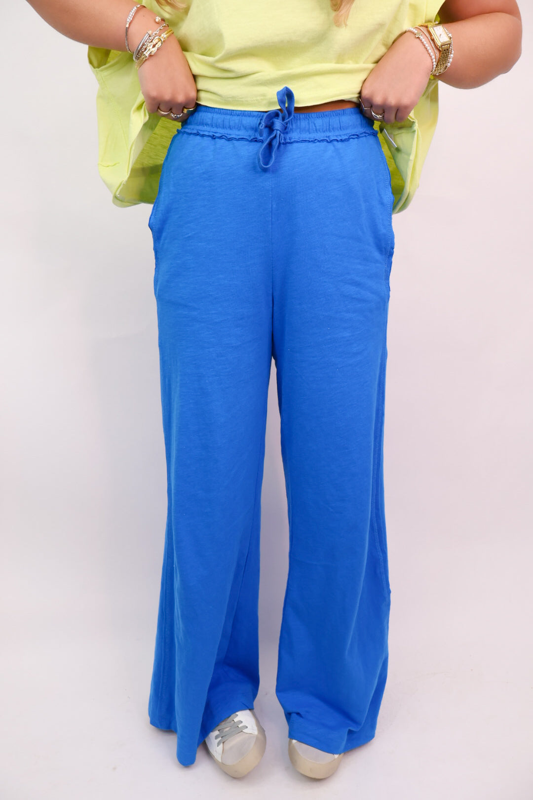 Lightweight Drawstring Wide Leg Pants - Cobat Blue