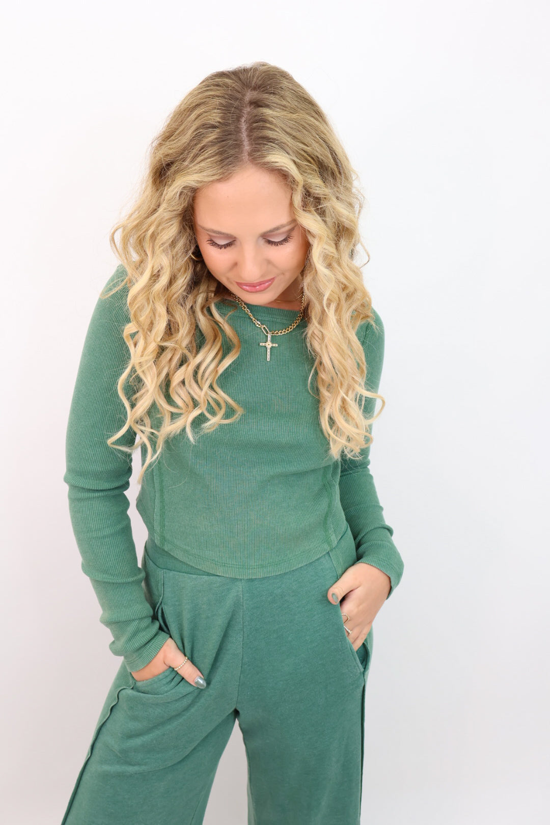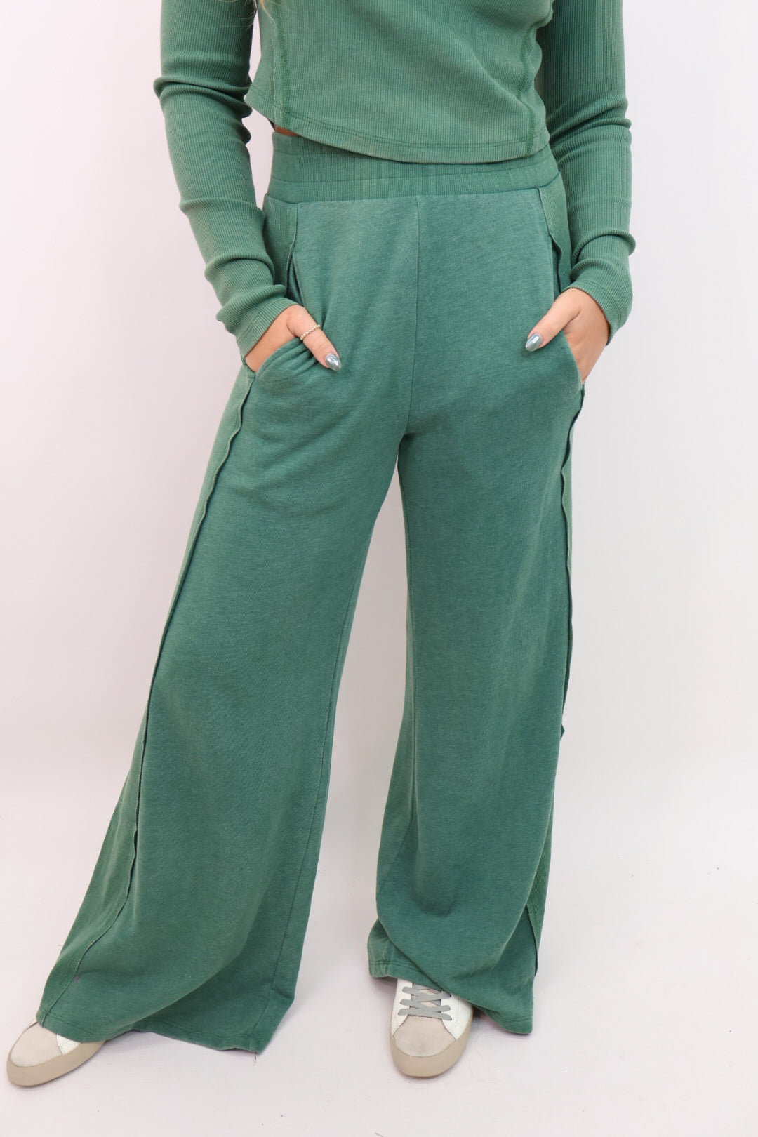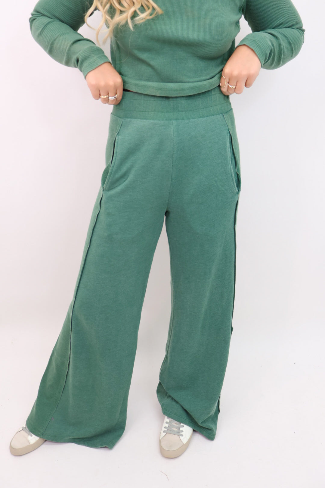 Everyday Wide Leg Pants and Top Set - Hunter Green