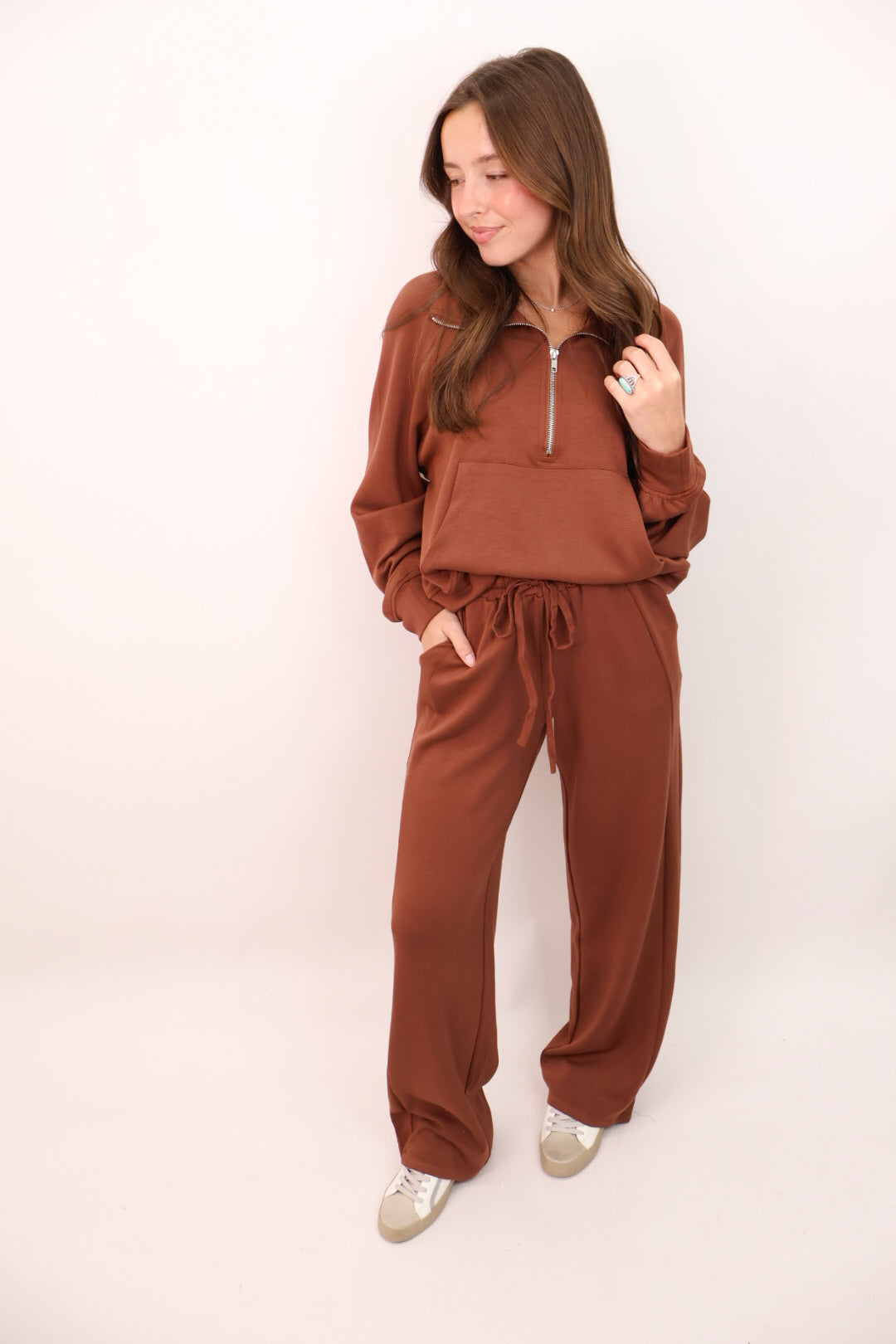 Everyday Wide Leg Pants and Top Set - Chocolate