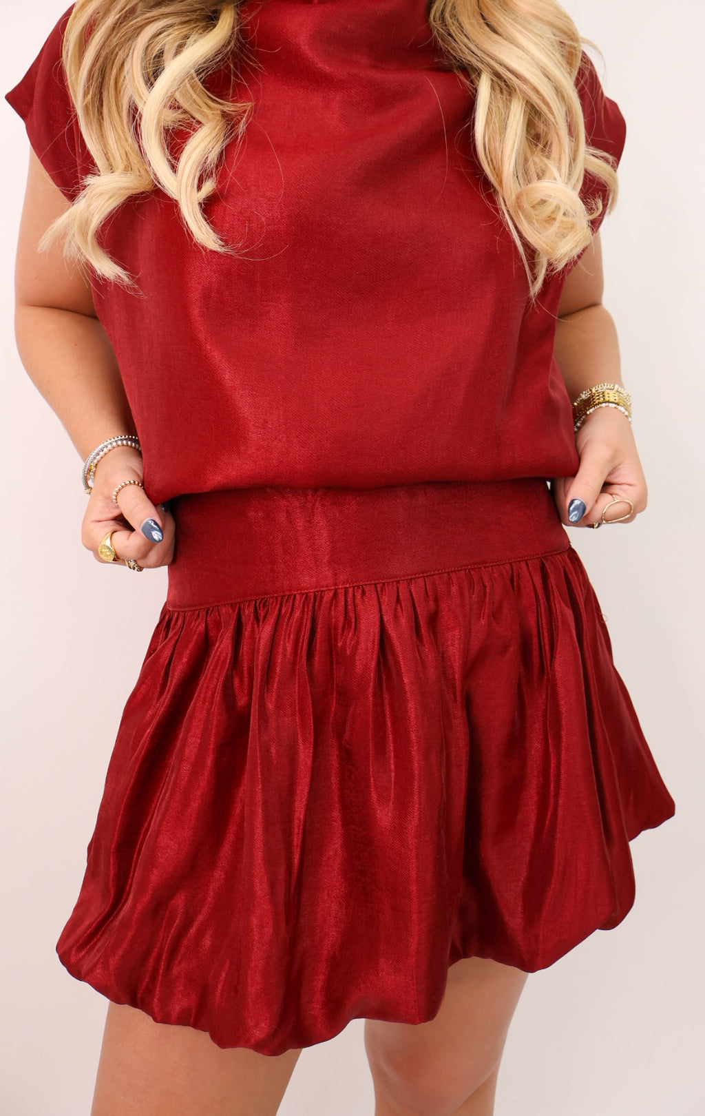 Shimmer Balloon Top + Skirt Set - Burgundy