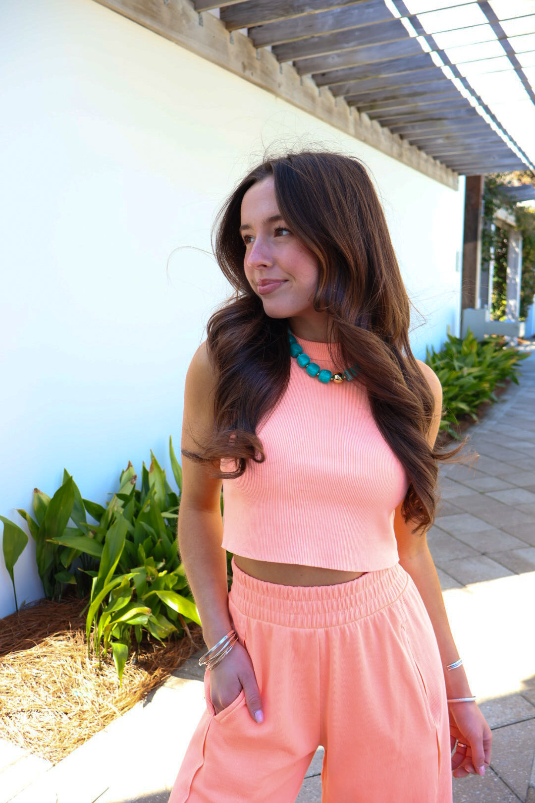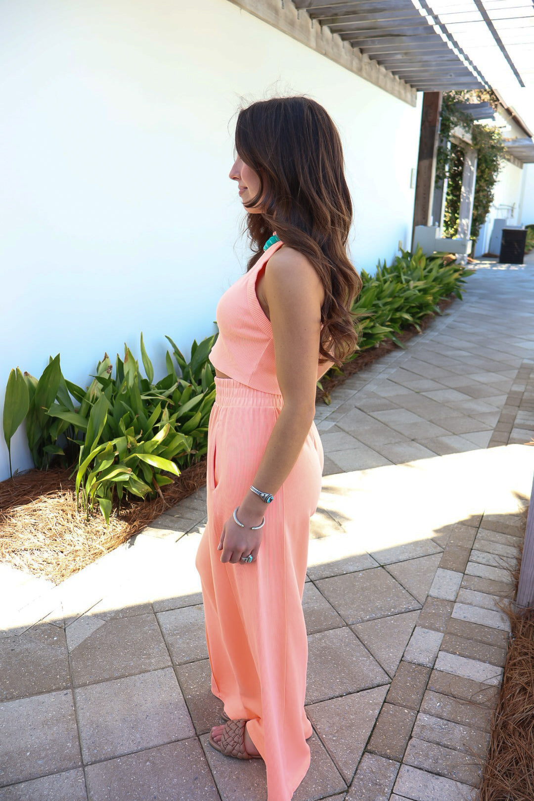The Everyday Escape Ribbed Tank Set - Neon Coral