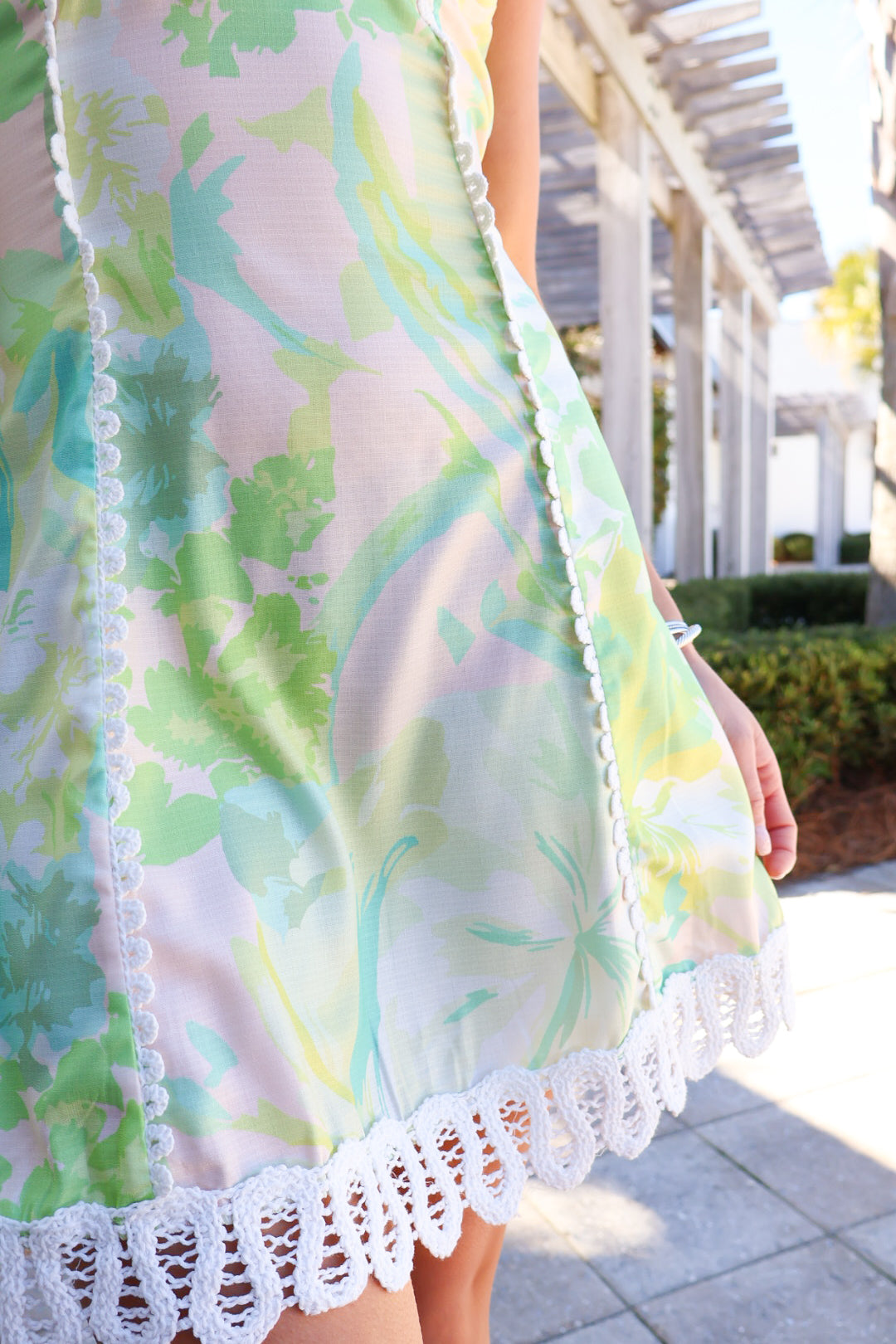 Green Printed Lace Trim Mini Dress