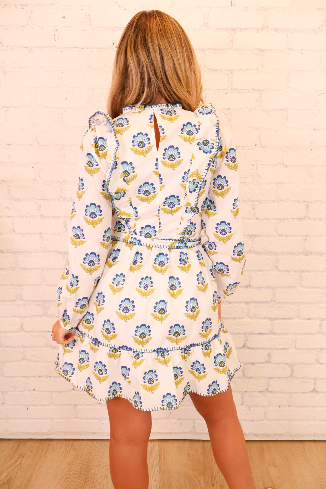 Blue Floral Tie Waist Dress