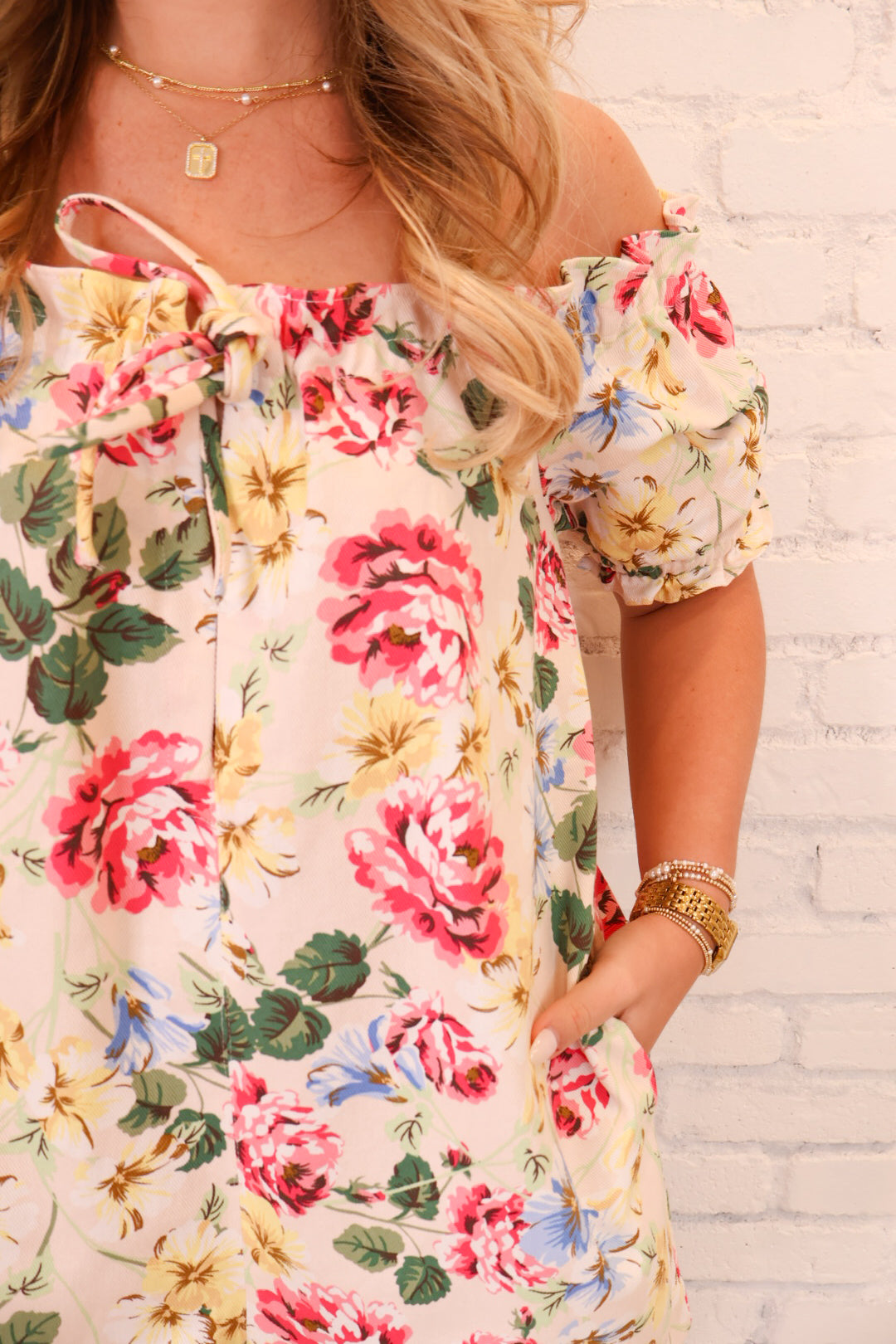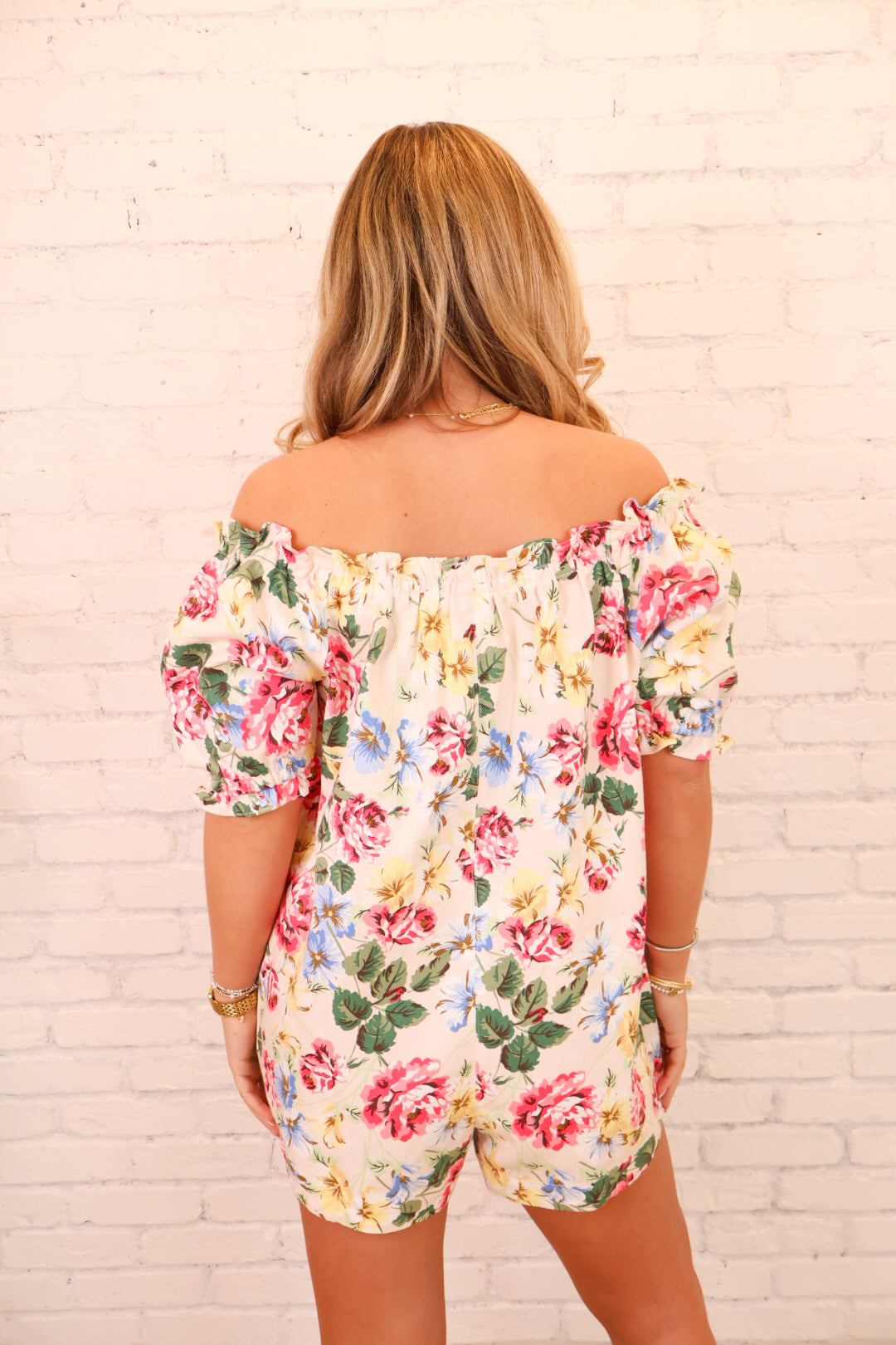 Cream Floral Off-The-Shoulder Babydoll Romper