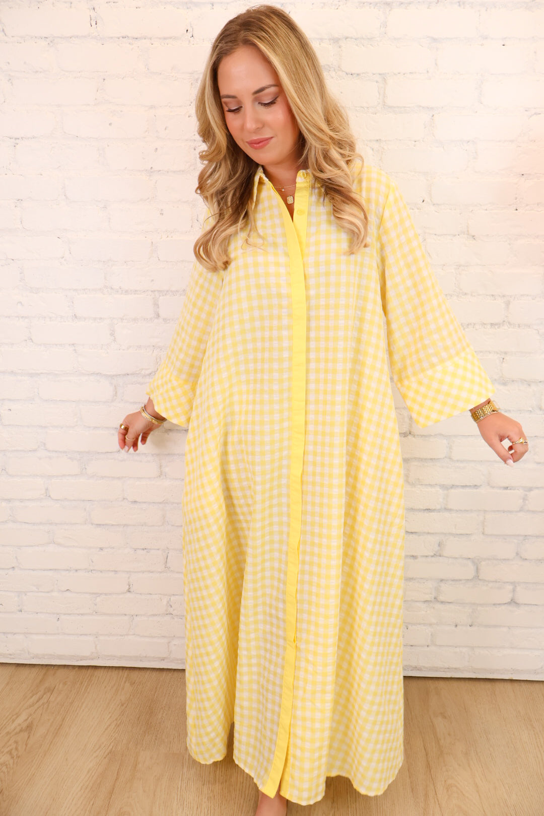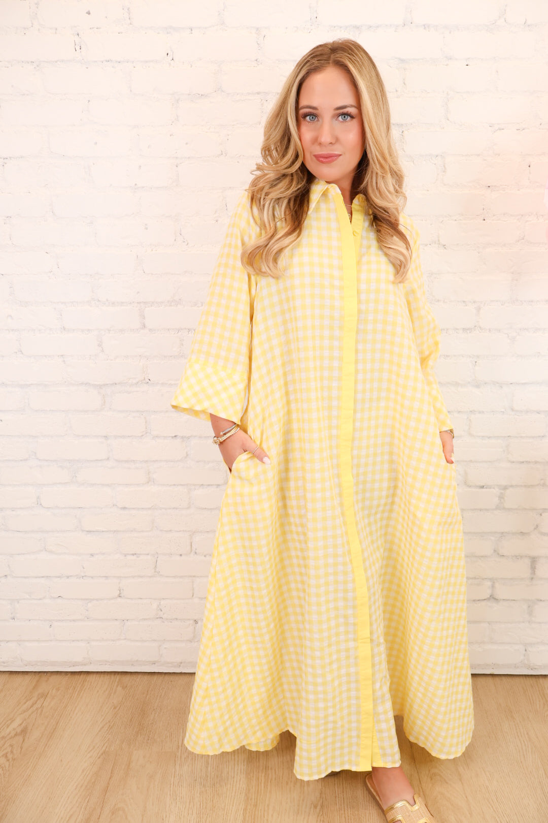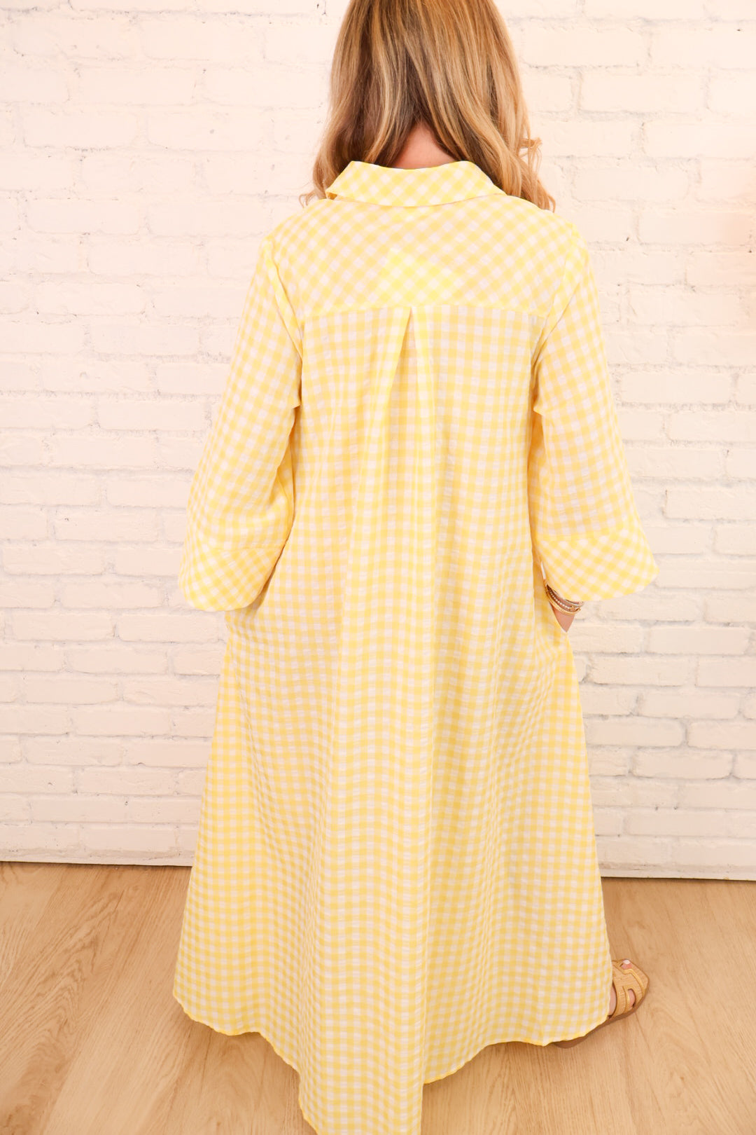 Yellow Gingham Button Front Maxi Dress