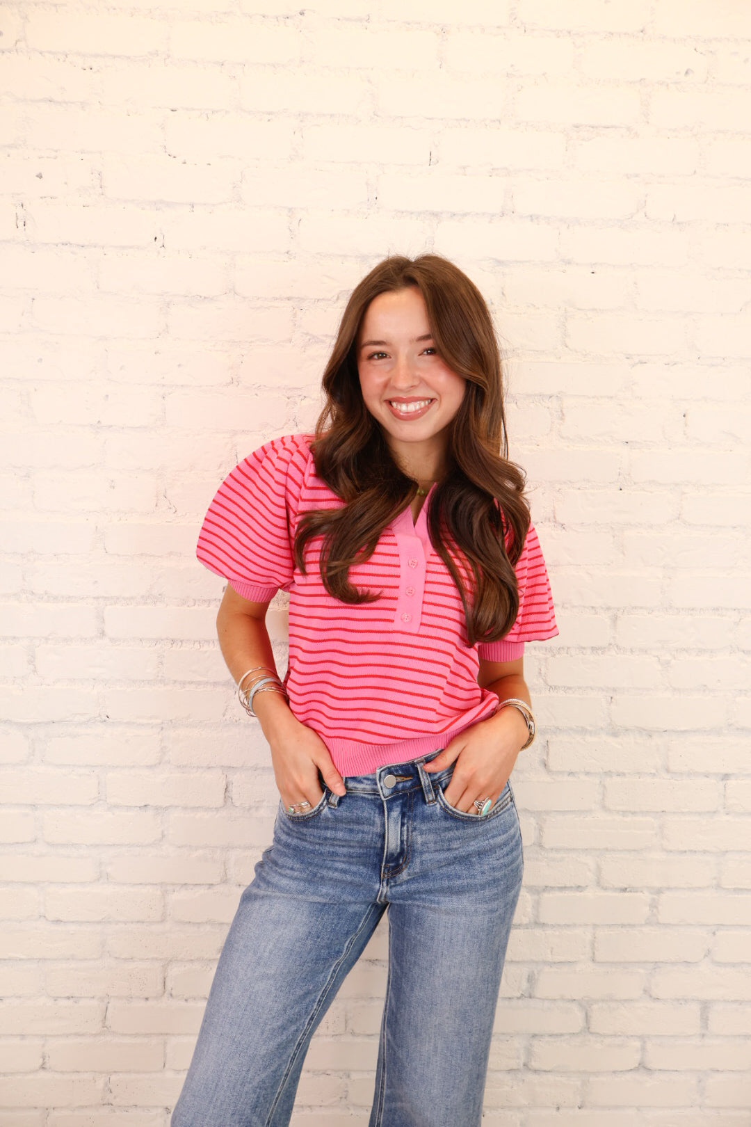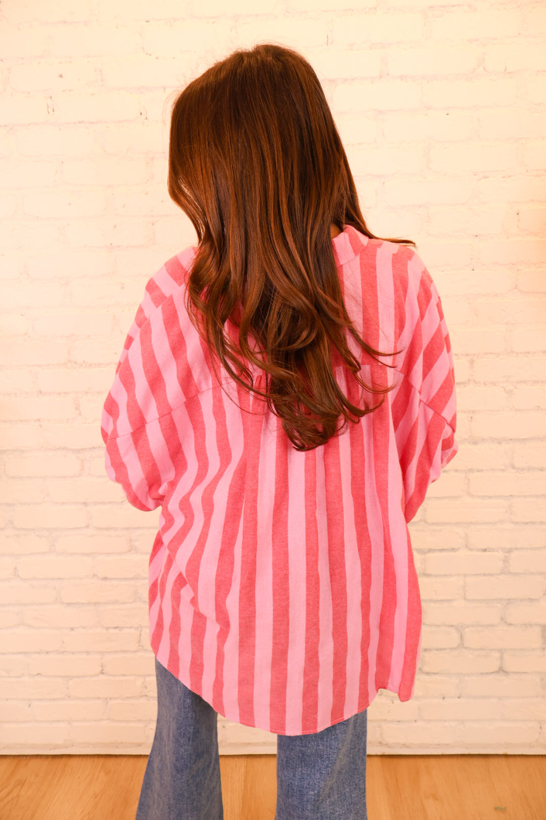 Pink Striped Oversized Button Front Top
