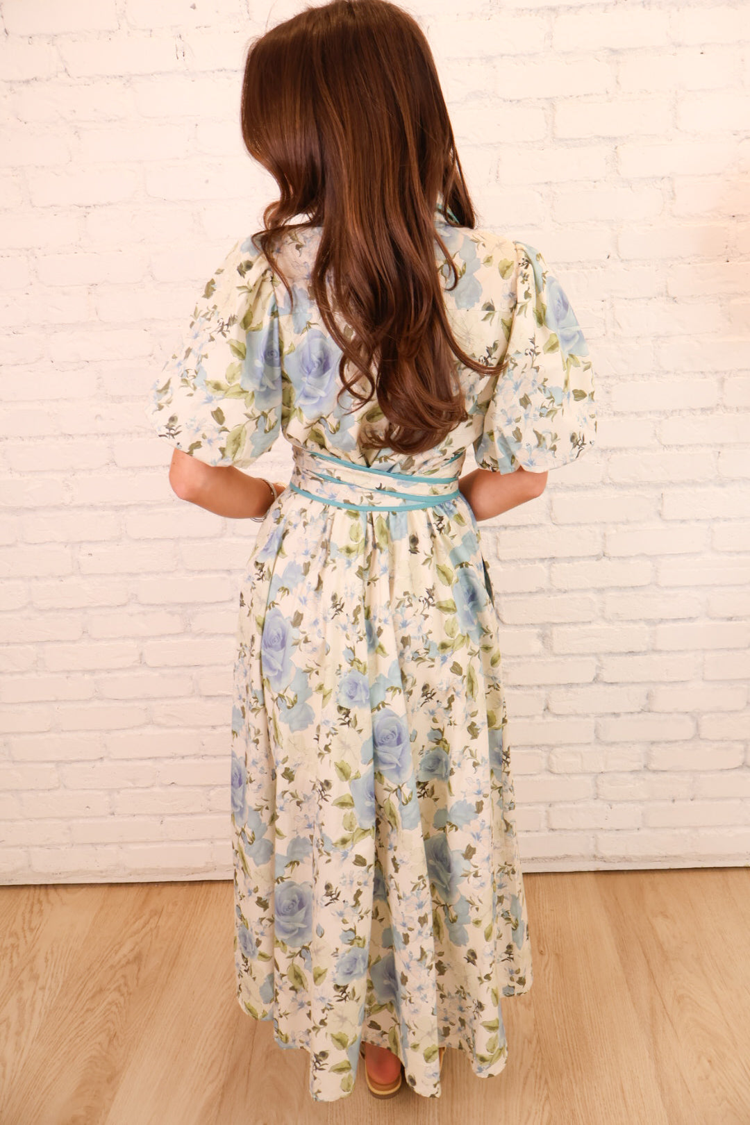 Blue Floral Tie Waist Midi Dress