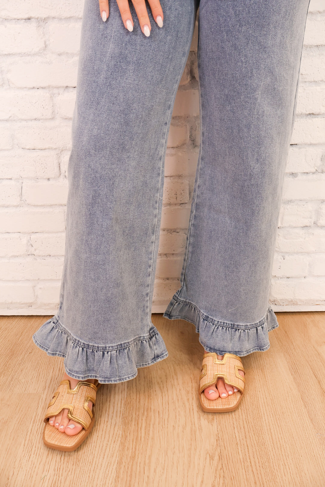 Ruffle Hem Wide Leg Jeans
