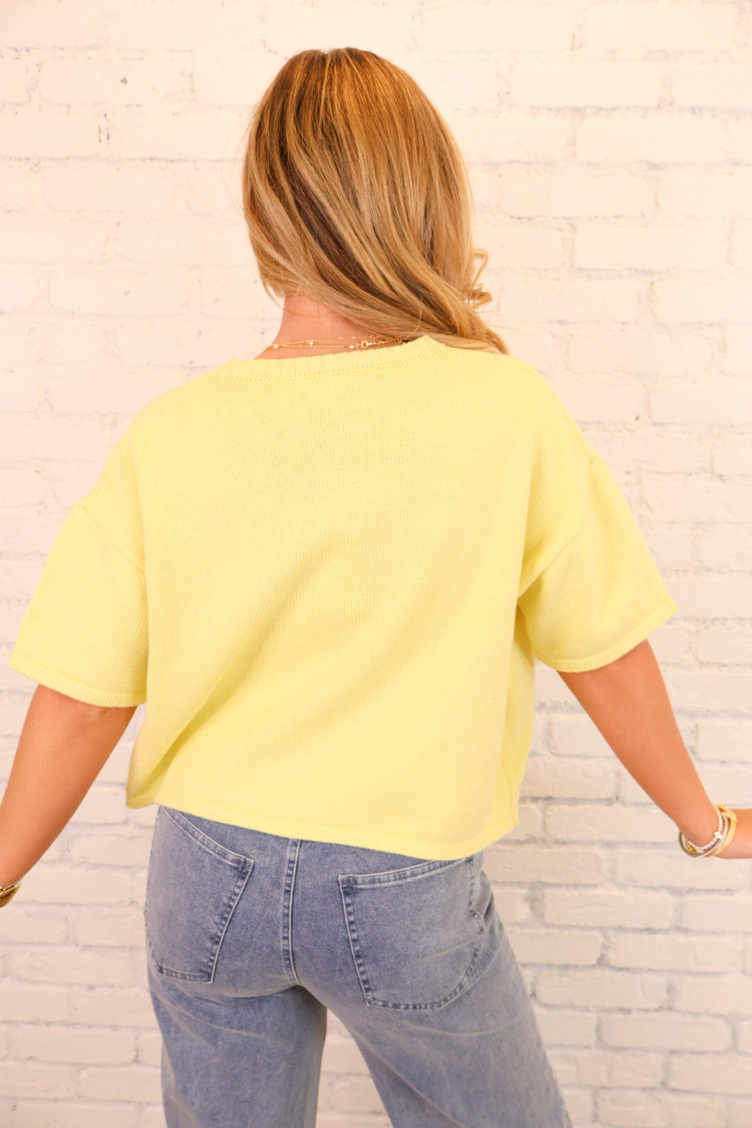 Short Sleeve Button Front Knit Top - Lemon Yellow
