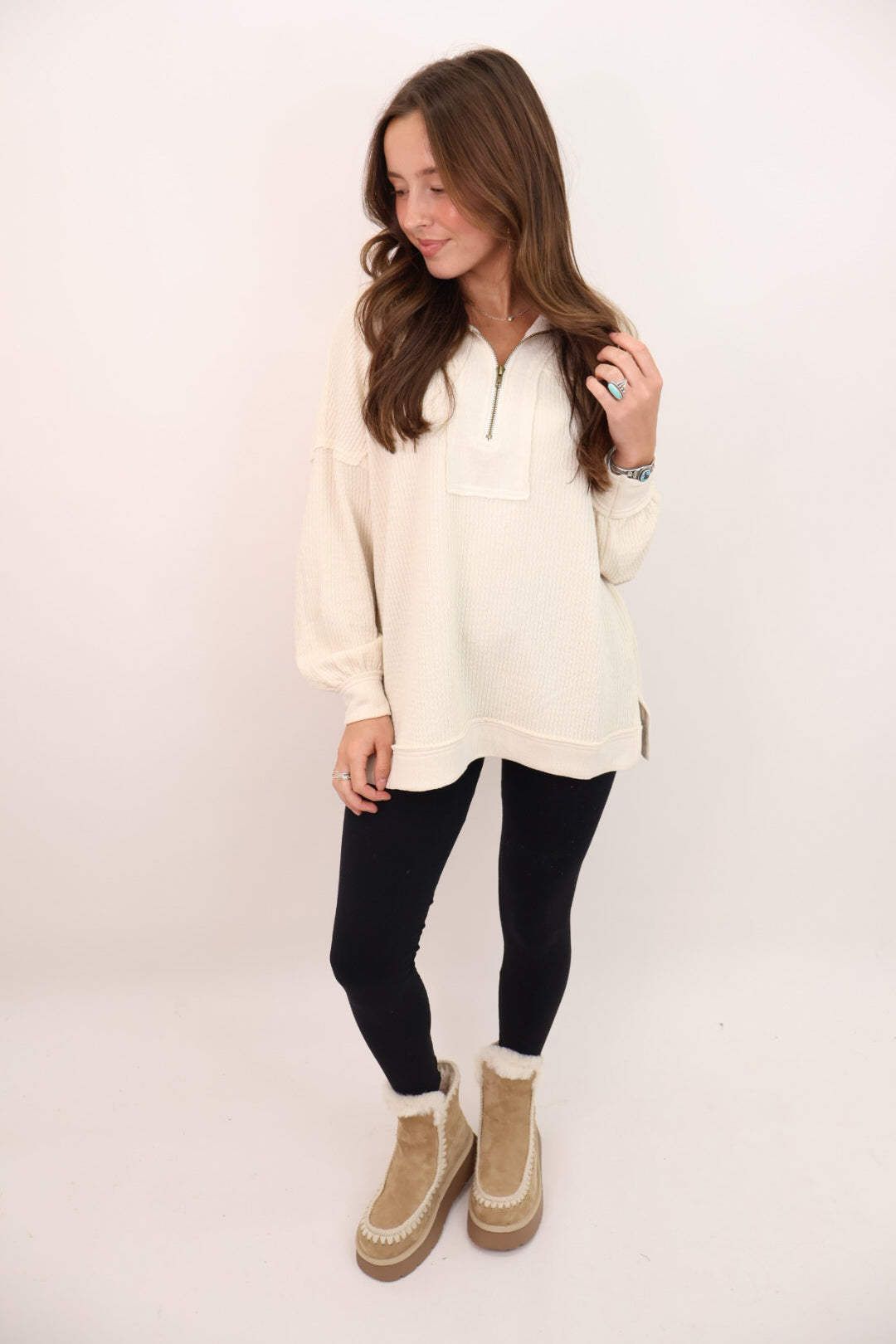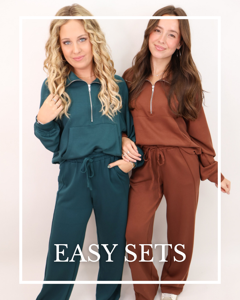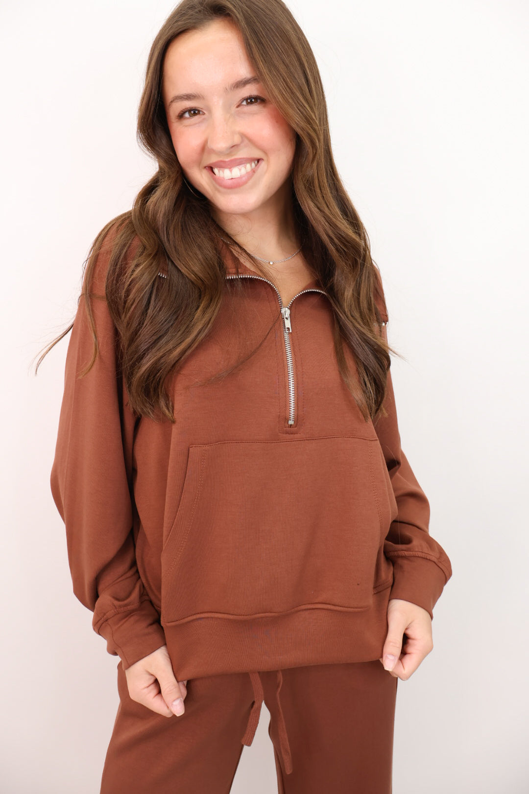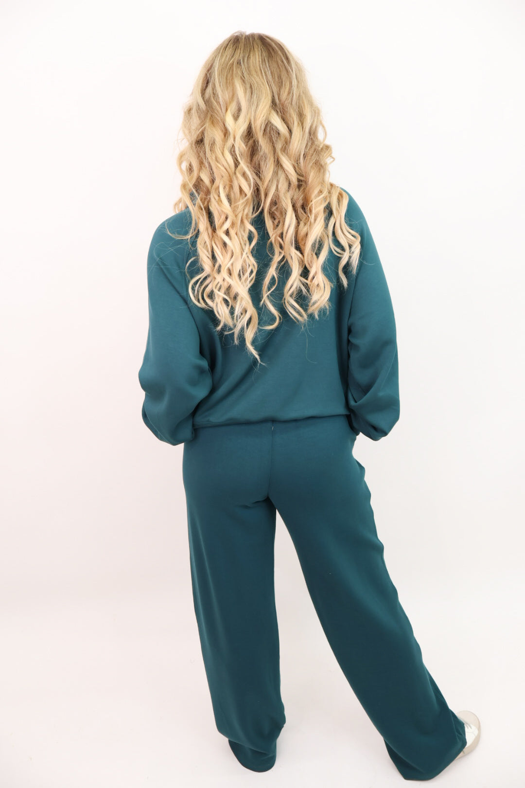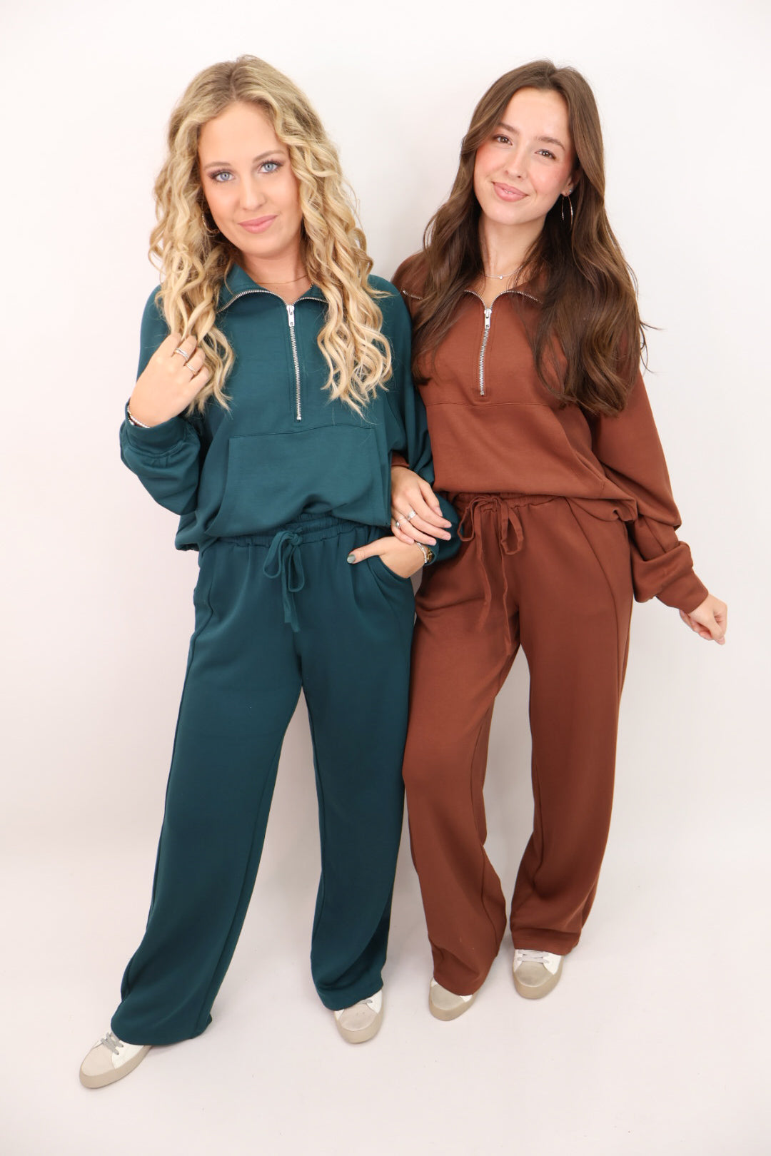 Soft Luxe Quarter Zip Pants Set - Deep Green