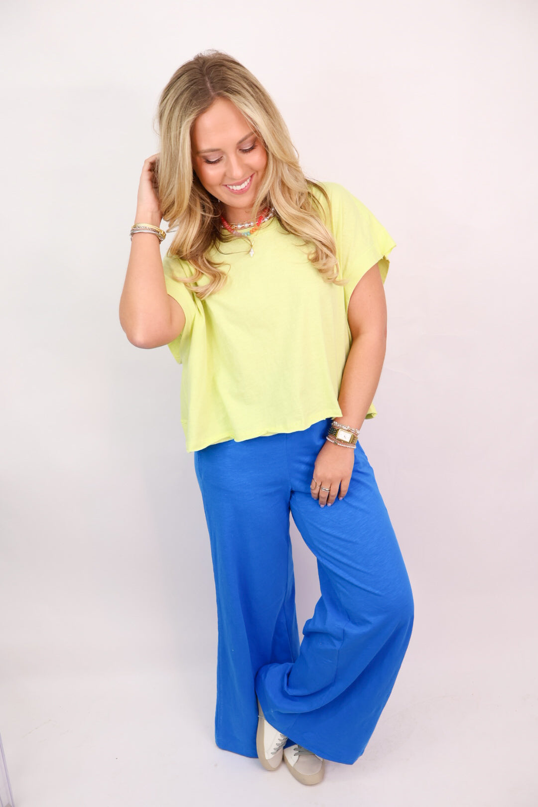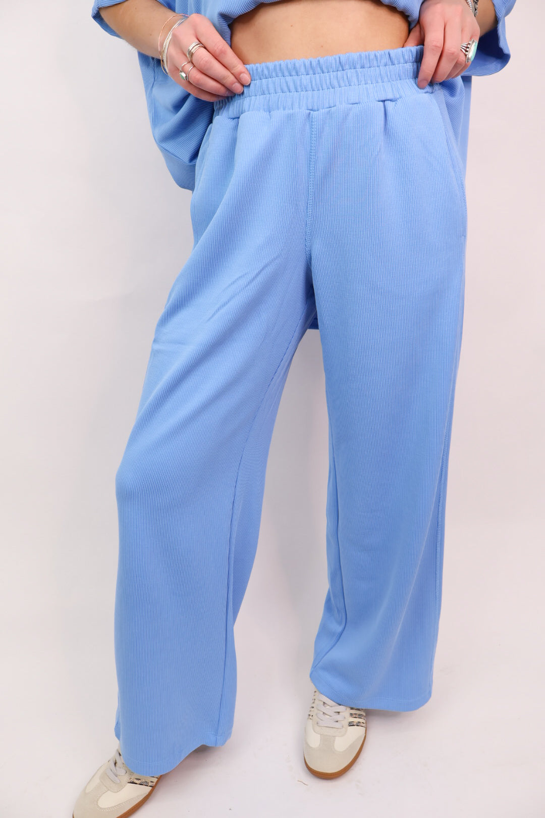 Lightweight Drawstring Wide Leg Pants - Cobat Blue