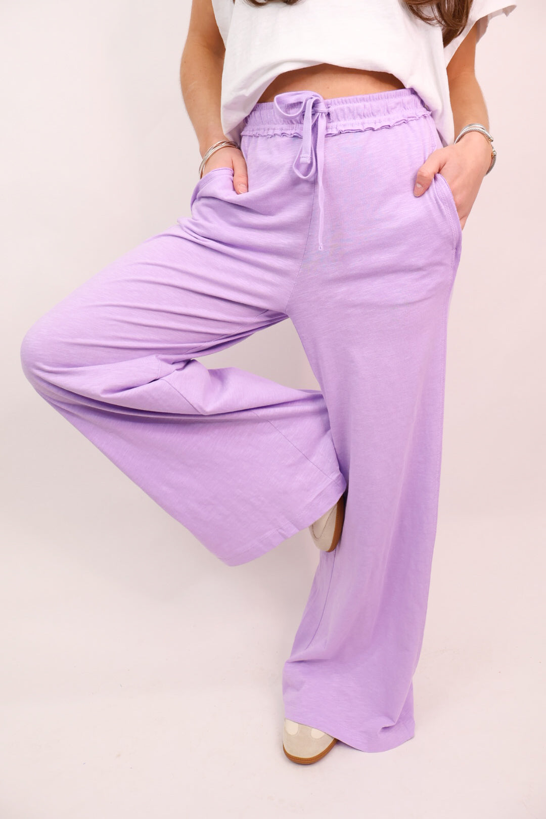 Lightweight Drawstring Wide Leg Pants - Lavender