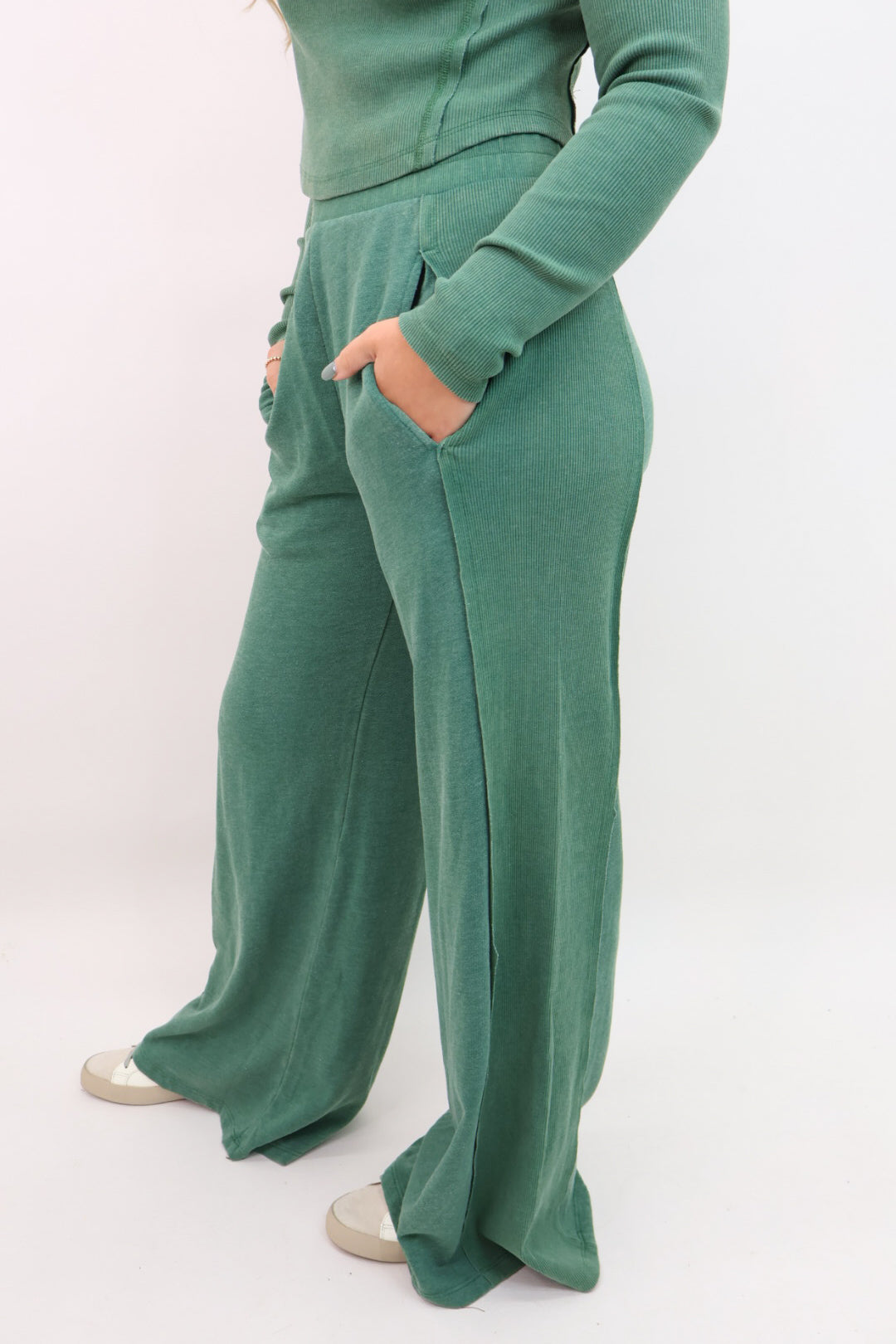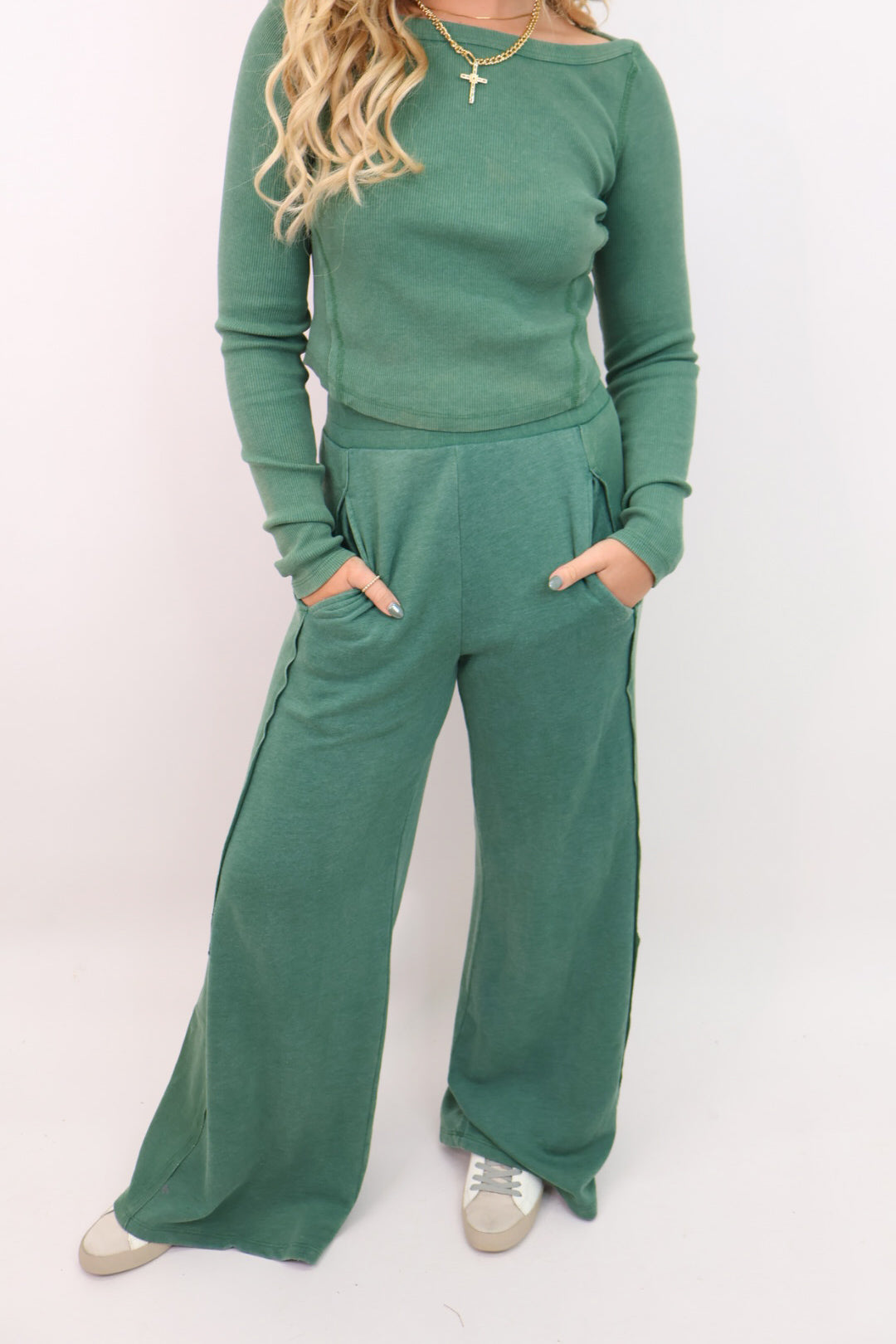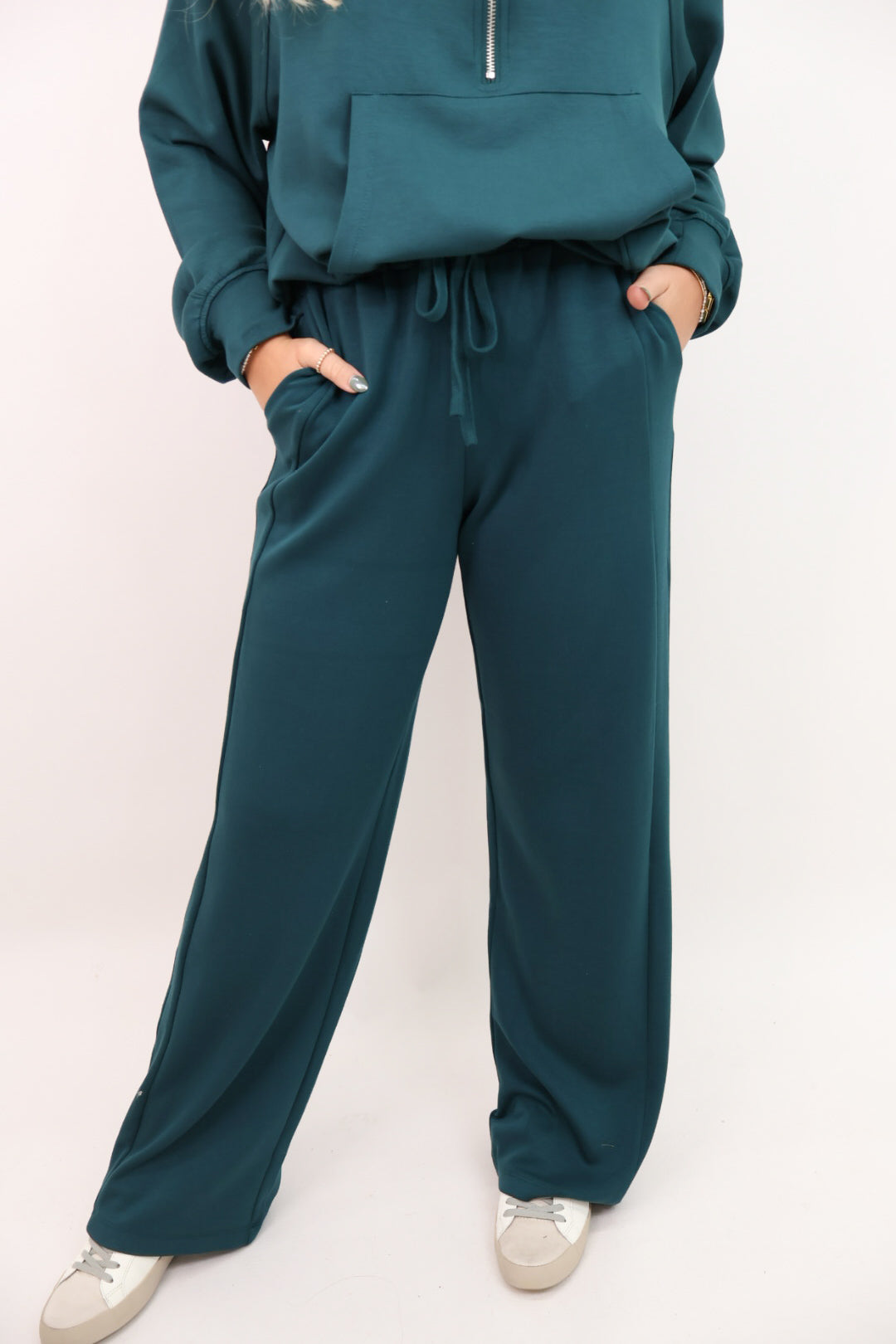 Everyday Wide Leg Pants and Top Set - Hunter Green