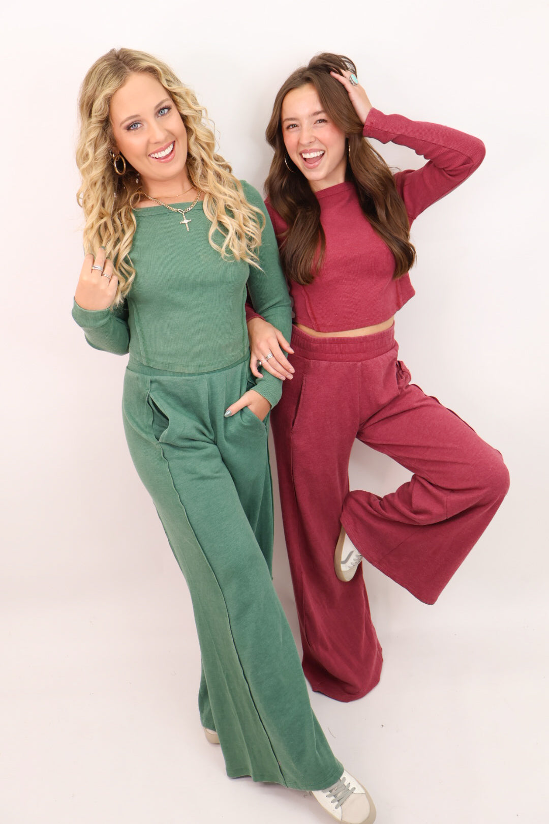 Everyday Wide Leg Pants and Top Set - Burgundy