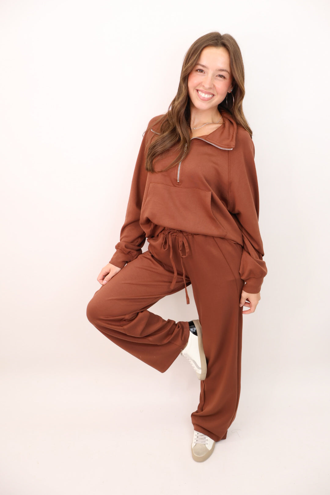 Everyday Wide Leg Pants and Top Set - Chocolate