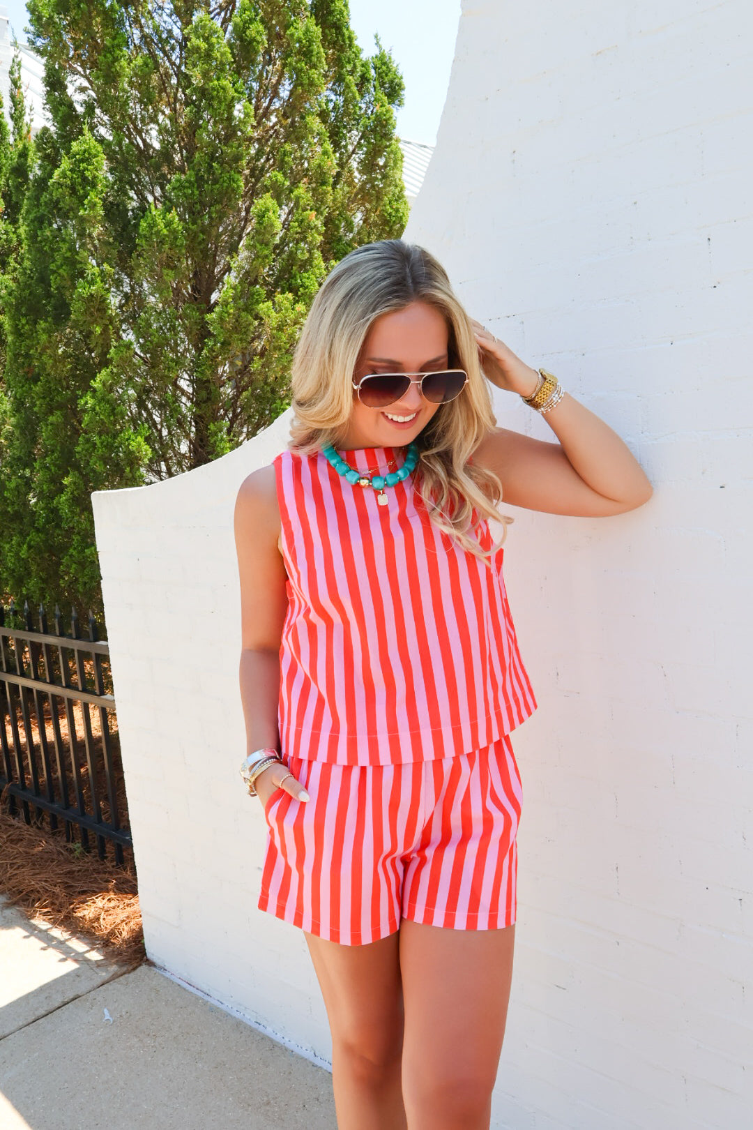 Multi Stripe Ribbed Tank - Blue/Key Lime