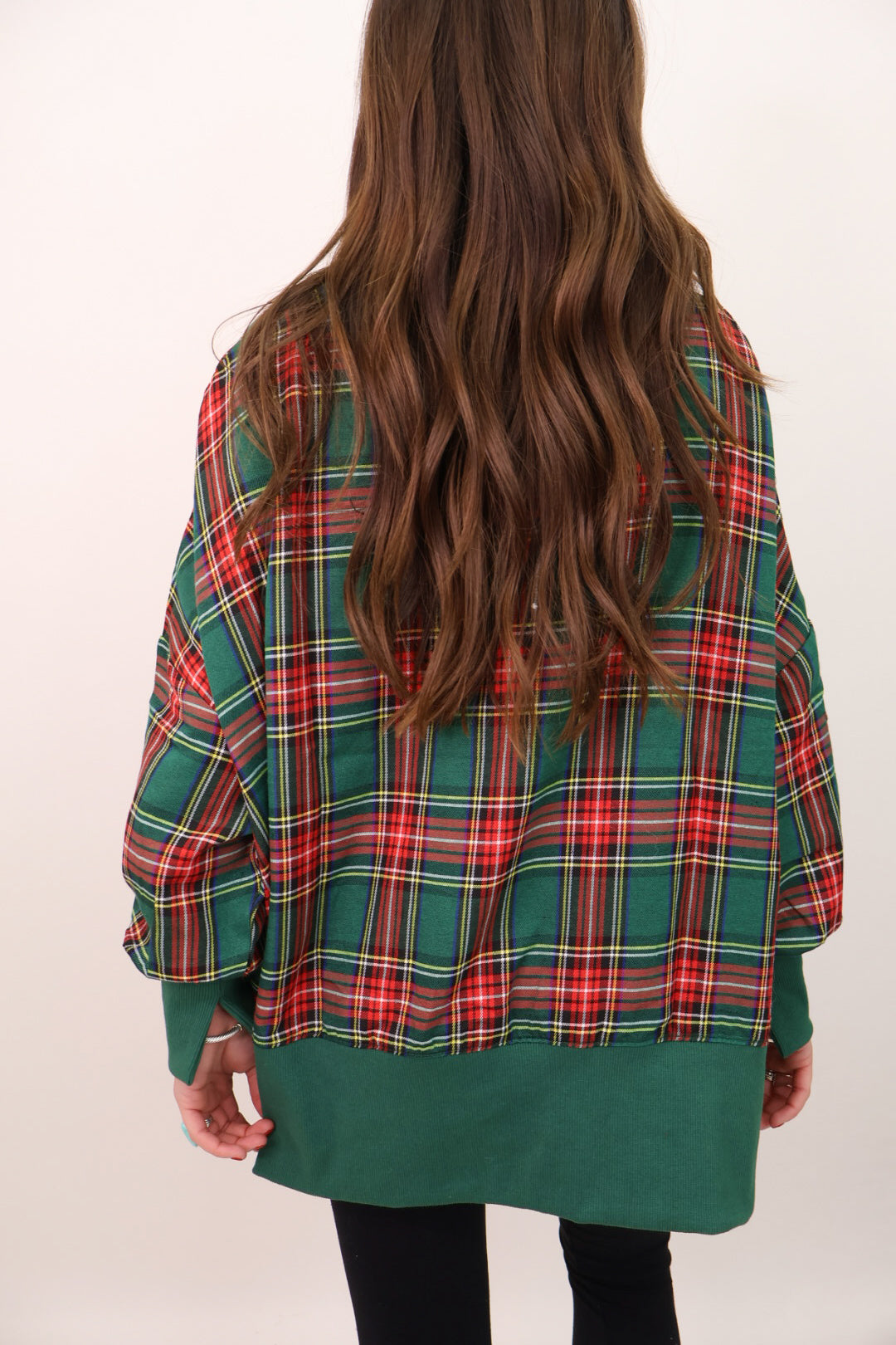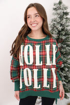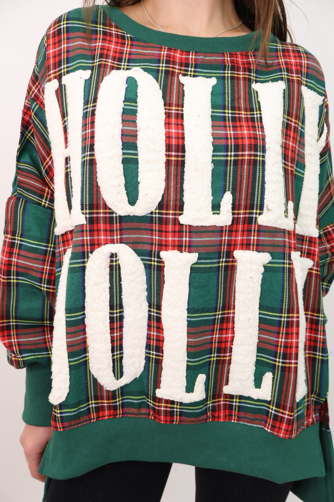 Green Plaid Chenille Patch Holly Jolly Pullover