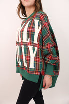 If you want to show up festive without wearing something over the top — this sweatshirt is it. The plaid fabric gives it that classic holiday vibe, while the chenille letters make it feel a little extra in the best way. It’s soft, roomy, and perfect for everything from Christmas cookie baking to family photos. You'll wear this one nonstop all season long!