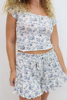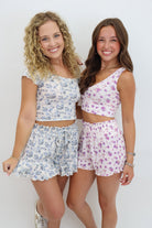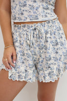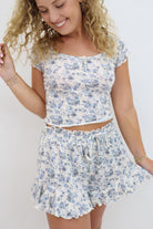 Indulge in comfort and style with our Blue Floral Lounge Set! This sweet set features a soft washed fabric and delicate lettuce edge trim. The henley top and high-waisted flare shorts add a touch of flair to this perfect pajama or lounging outfit. Treat yourself to cozy relaxation in style!