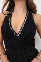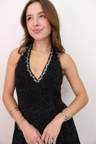 black tweed dress, crystal trim dress, holiday party dress, New Year’s Eve dress