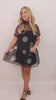 women’s holiday dress, black organza dress, polka dot babydoll dress, sheer holiday dress, festive party dress, bow back dress, boutique Christmas outfits, polka dot holiday dress