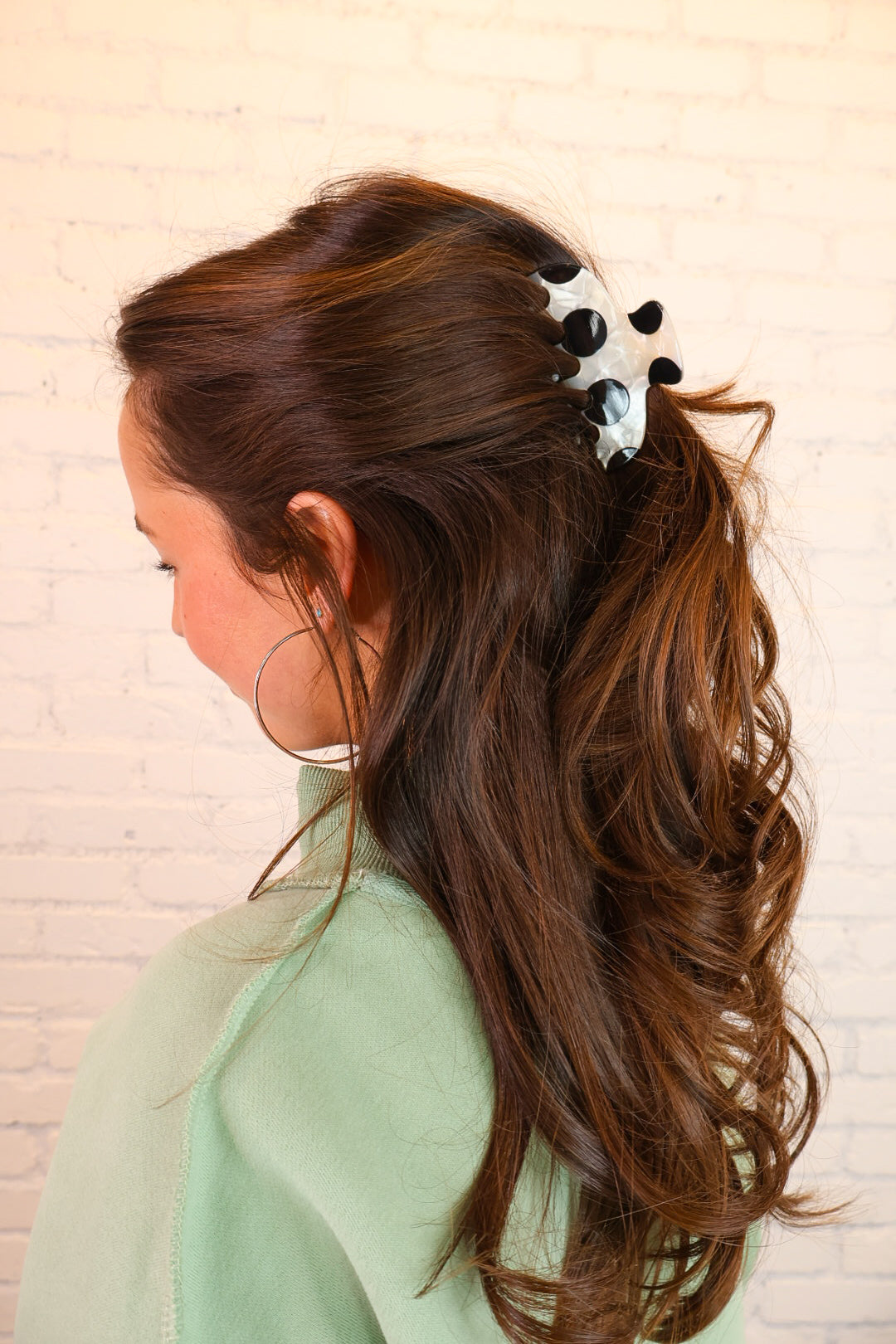 polka dot hair clip, claw clip, black and white hair clip, women’s hair accessories, everyday hair clip, trendy hair accessories, claw hair clip