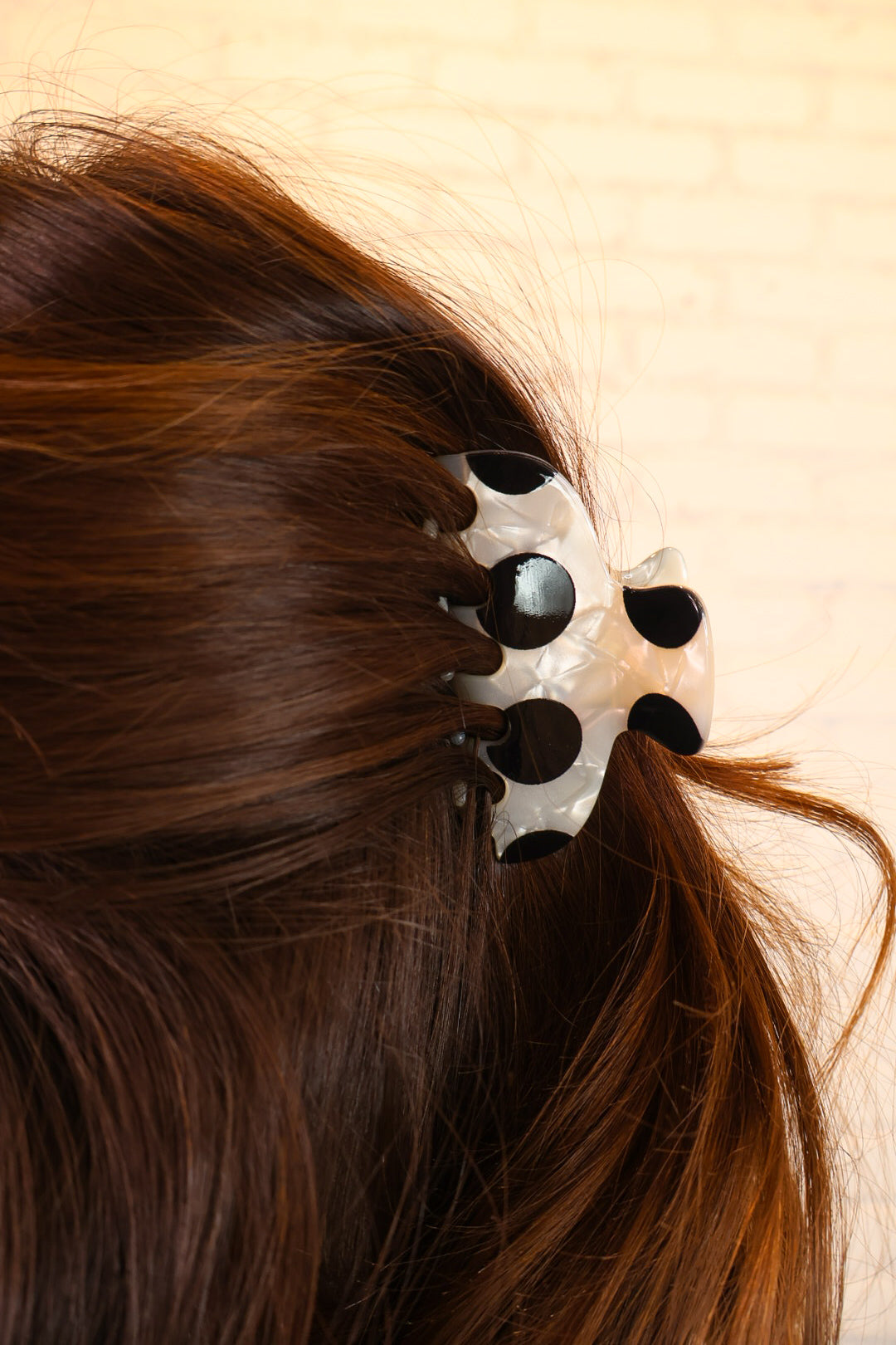 This black and white polka dot hair clip is the perfect mix of fun and functional! Featuring a classic polka dot pattern with a glossy finish, it adds a playful pop to any hairstyle while still feeling timeless and easy to wear.