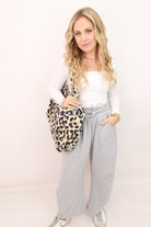 Our Quilted Leopard Duffle Bag is the ultimate mix of bold and functional. Featuring a chic leopard print with contrast black-and-white striped trim, this oversized tote is made for weekend getaways, gym runs, and everything in between. The quilted texture gives it that cozy-meets-luxe feel, while the roomy interior easily fits all your essentials (and then some).