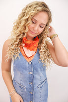 Bright, bold, and oh-so-fun—our Sunset Bloom Satin Scarf is made for color lovers. This vibrant print features oversized florals in fiery orange, coral, blue, and hints of blush. It’s the perfect statement accessory to mix in with your basics. Pair it with denim, layer it over a solid tee, or tie it around your bag handle when you’re traveling light.