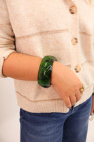 green resin bangle, chunky bracelet, statement jewelry, fall accessories, trendy fall jewelry, bold green bracelet, lightweight chunky bangle