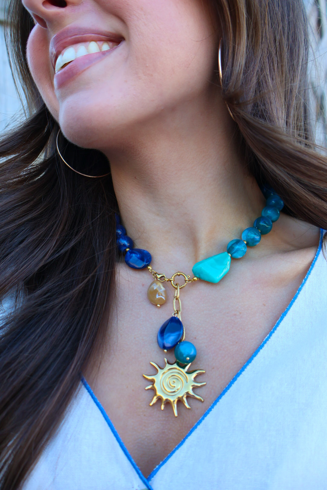 Becky Turquoise + Gold Delicate Pearl Necklace