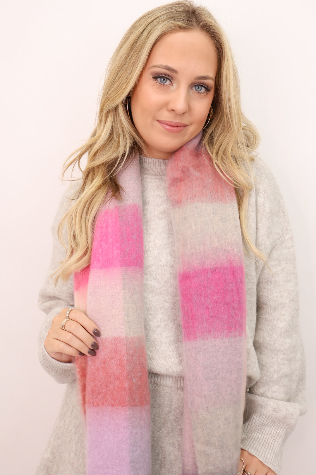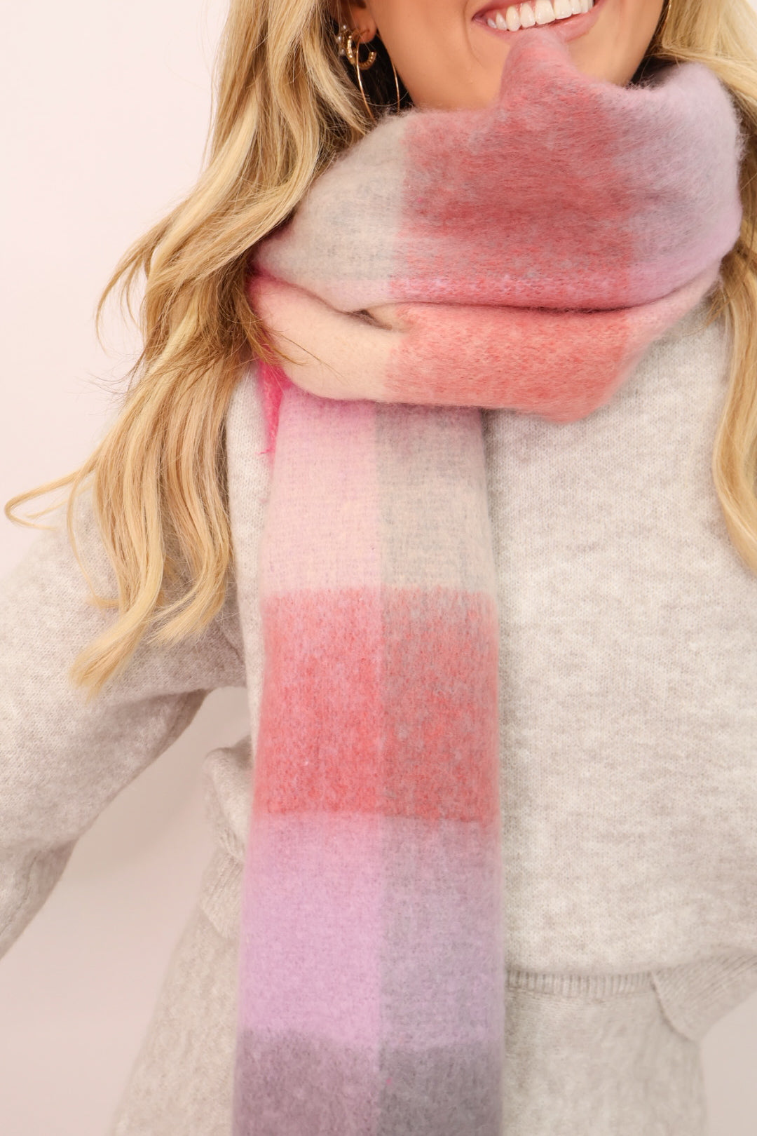 *PRE-ORDER 12/23* Oversized Plaid Scarf - Pink Mix