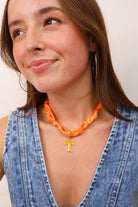 Tennessee scarf necklace, gameday accessories for women, SEC team jewelry, gameday outfit ideas, boutique team accessories, Tennessee charm necklace, custom fan gear, cute gameday necklace