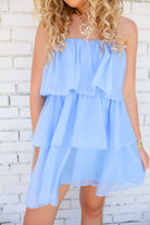 Light as air and sweet as summer, this dreamy blue mini brings instant joy! With a strapless neckline and tiered chiffon layers, this dress floats with every step. The soft baby blue hue feels fresh and flattering on all skin tones—perfect for warm weather days or golden hour plans.
