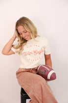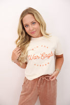 Win for Auburn, but do it in comfort. This cozy ivory tee features bold orange 'Win for Auburn War Eagle' script across the front, printed on a soft Comfort Colors cropped tee. It’s a clean and simple way to rep your team without going over the top — and it pairs perfectly with our new joggers or wide leg sweatpants.