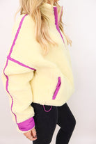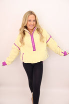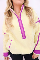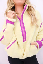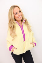 Cozy Sherpa Half-Zip Pullover - Banana + Lavender
