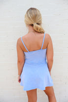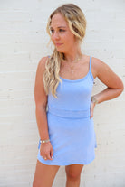 Say hello to your new go-to for every sunny, active moment. The Mineral Washed Athletic Dress is an effortless mix of sporty and feminine, made with a soft, stretchy knit that moves with you. This flirty mini dress features a built-in romper underneath (yes, with full coverage shorts!) and a flattering wide waistband that hugs your shape just right. Finished with a scoop neckline and slim straps, it's an easy throw-on-and-go piece for busy mornings, weekend tennis matches, or just looking cute at brunch. Available in two summery shades: cotton candy pink and sky blue.
