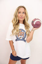 Say hey to your new favorite Auburn tee! Featuring a vintage-style circle graphic with the one and only Aubie front and center, this comfy oversized tee brings a retro twist to your Tigers wardrobe. With bold “War Eagle” lettering and classic orange and navy hues, it’s perfect for game day and beyond. Pair it with our new joggers or bike shorts for a laid-back tailgate look.