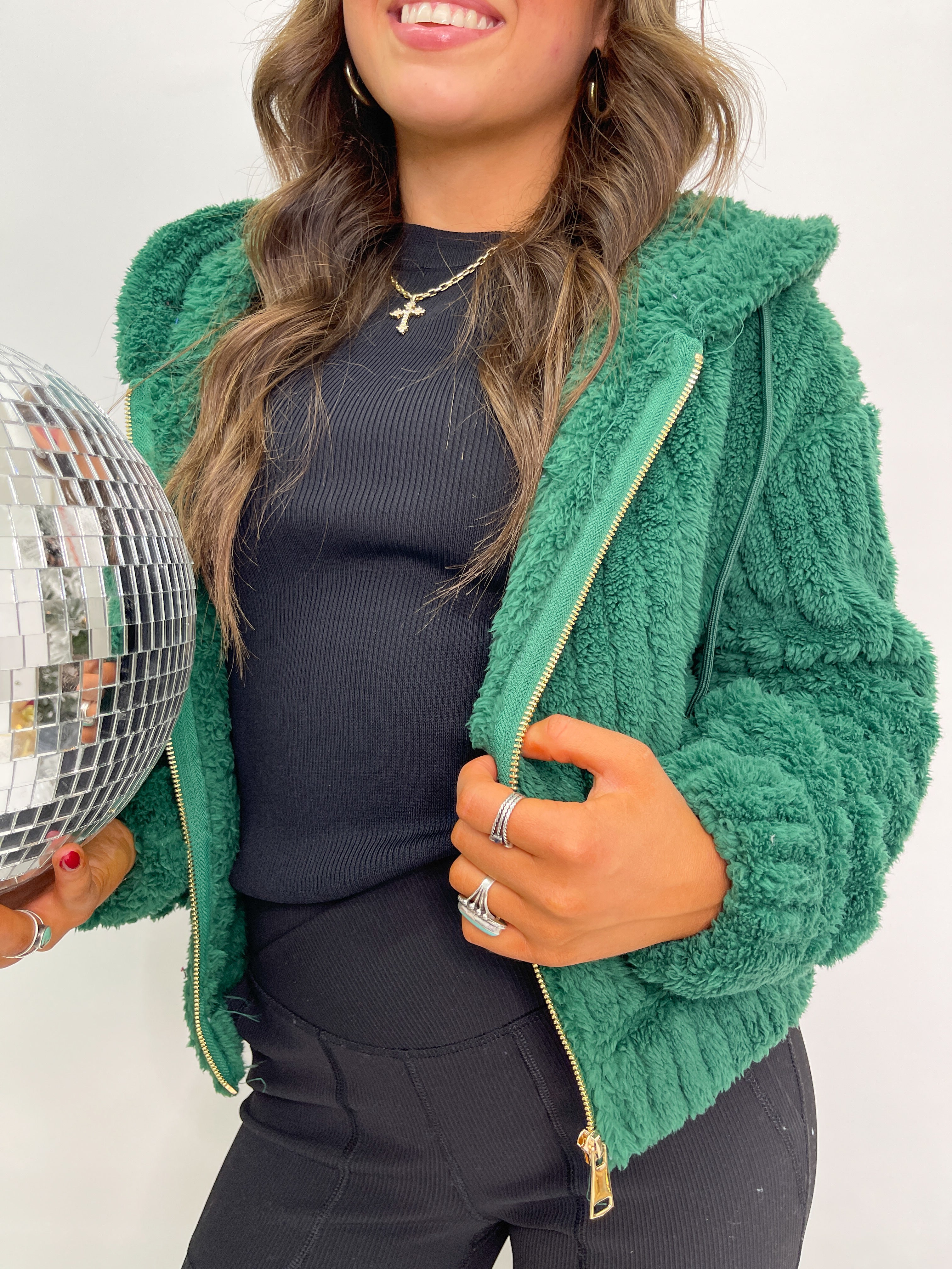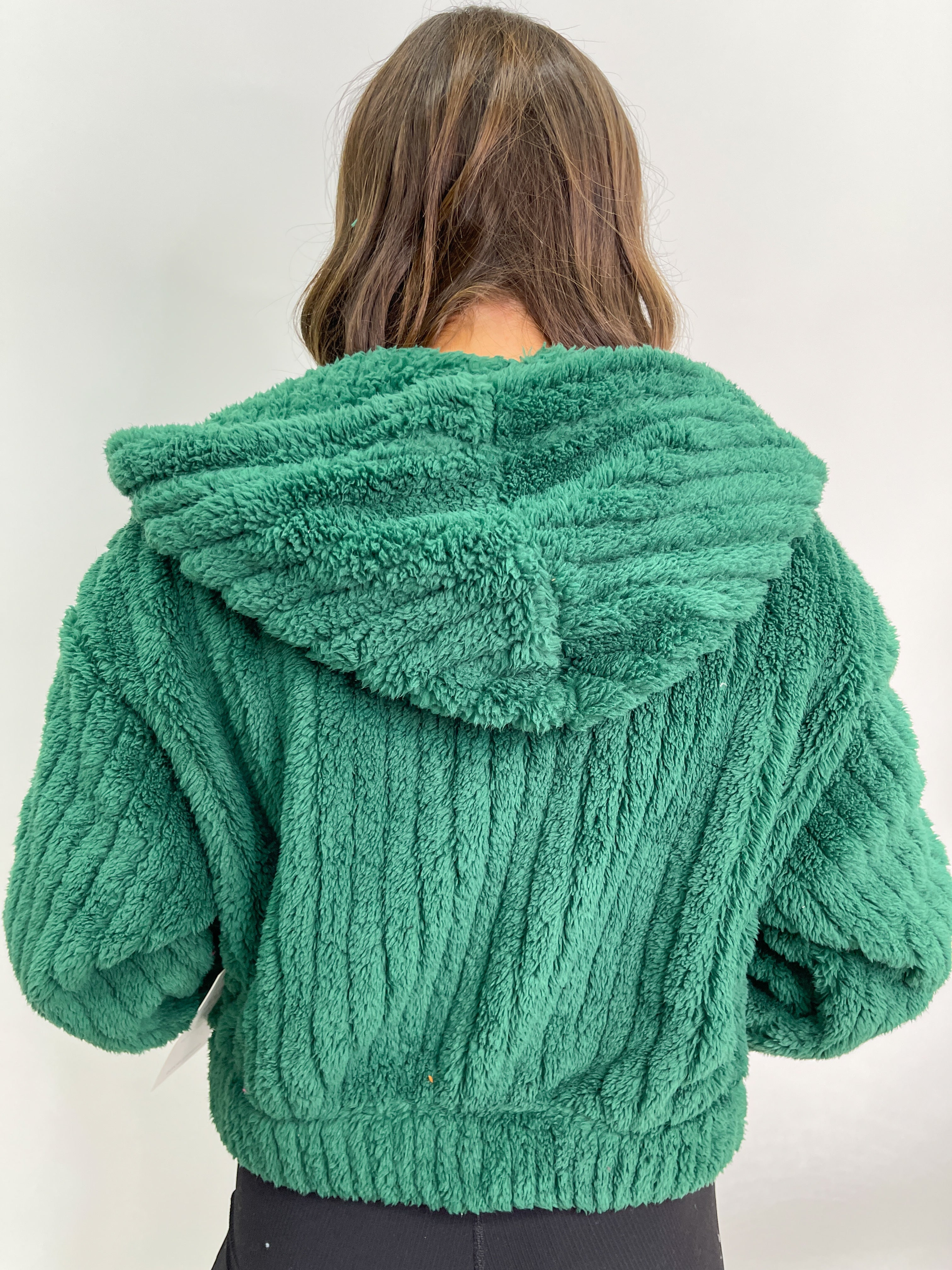 Hooded Ribbed Sherpa Jacket - Green
