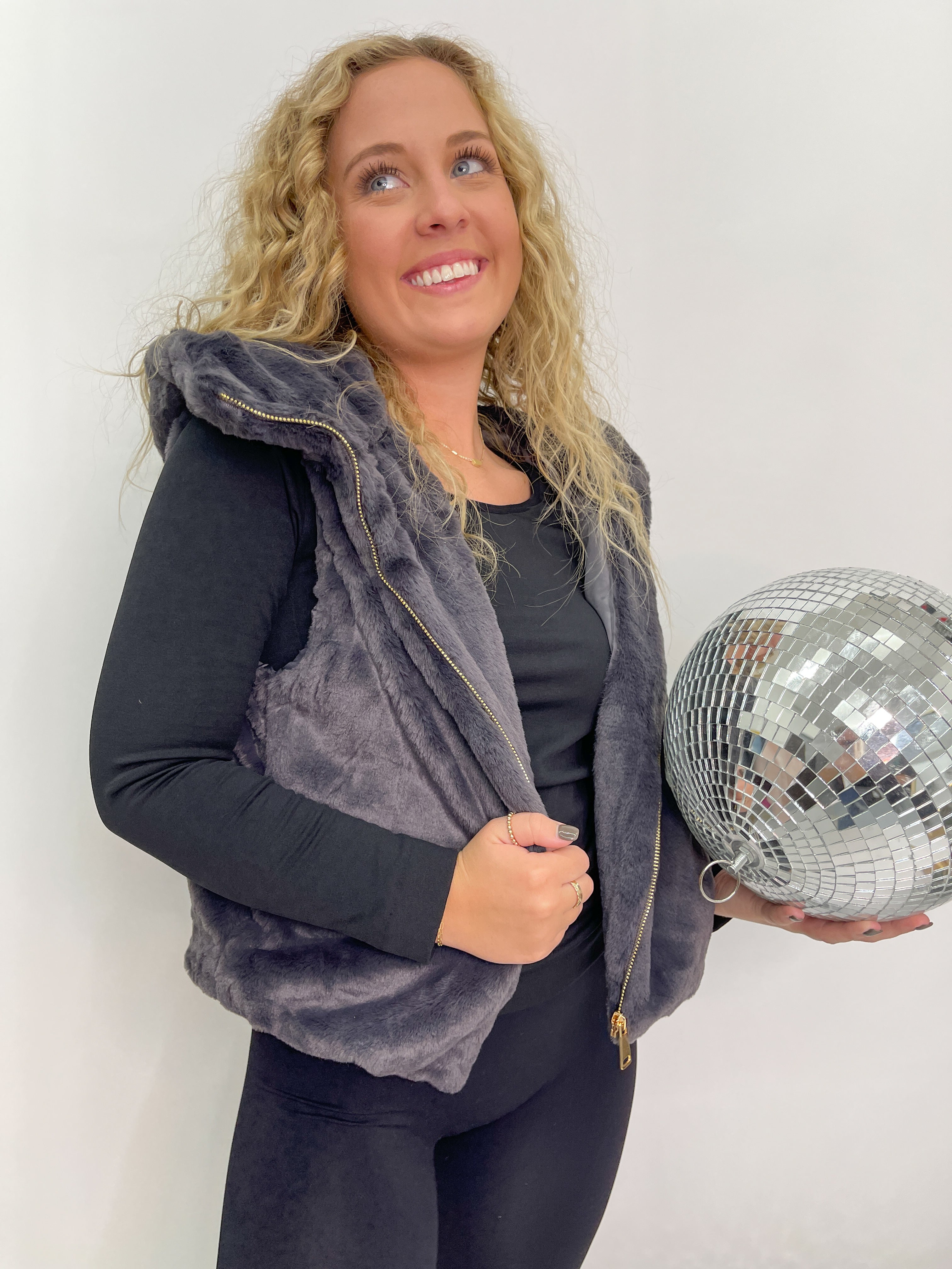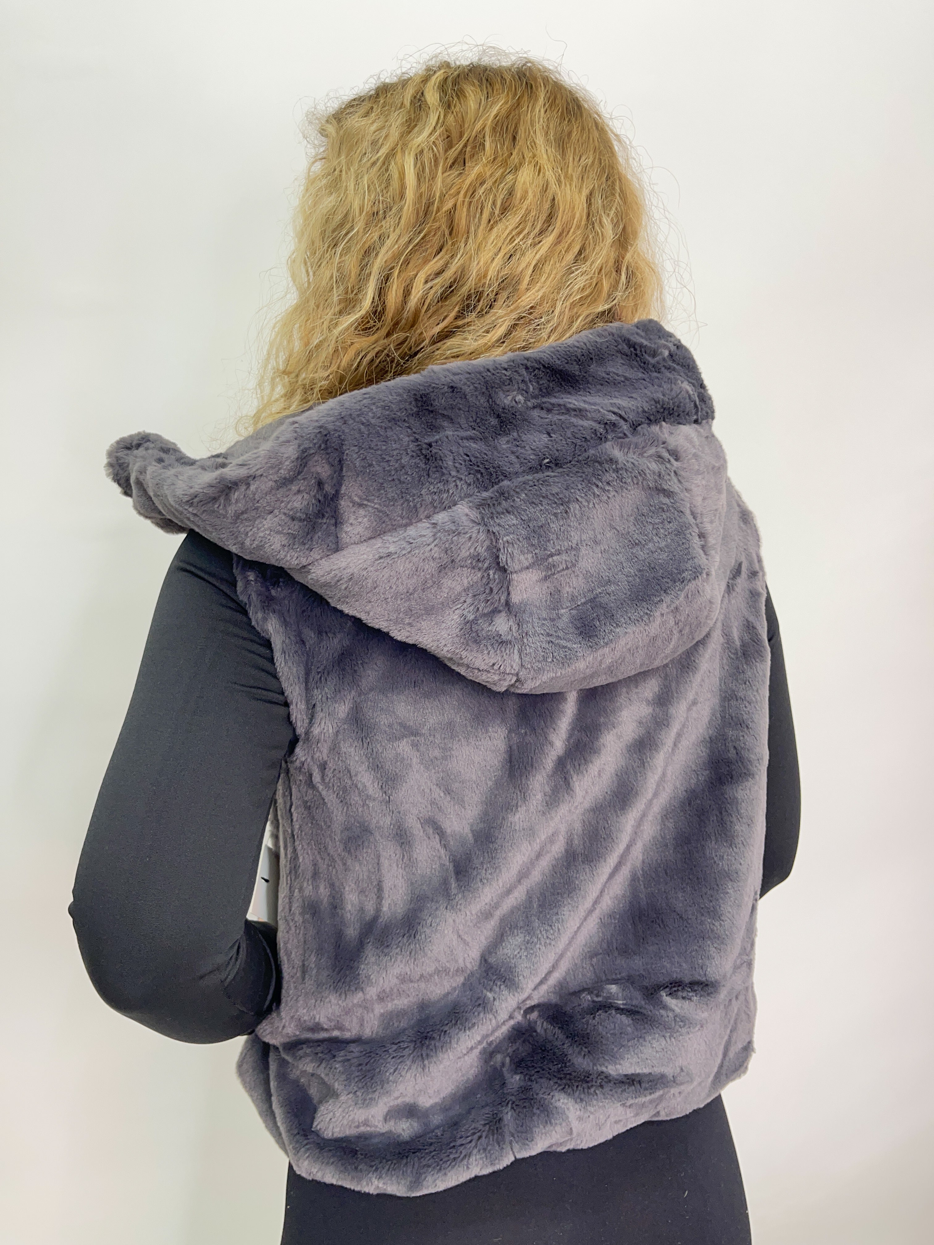 Faux Fur Hooded Vest - Grey