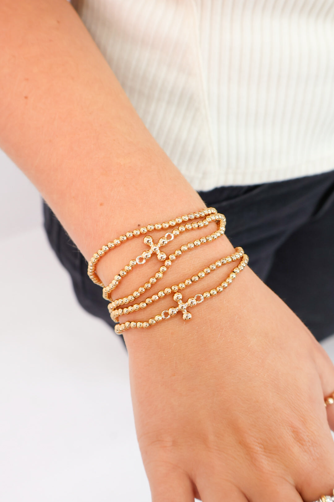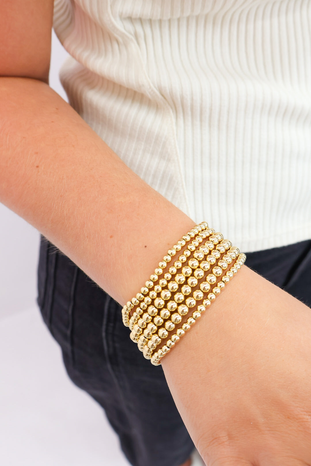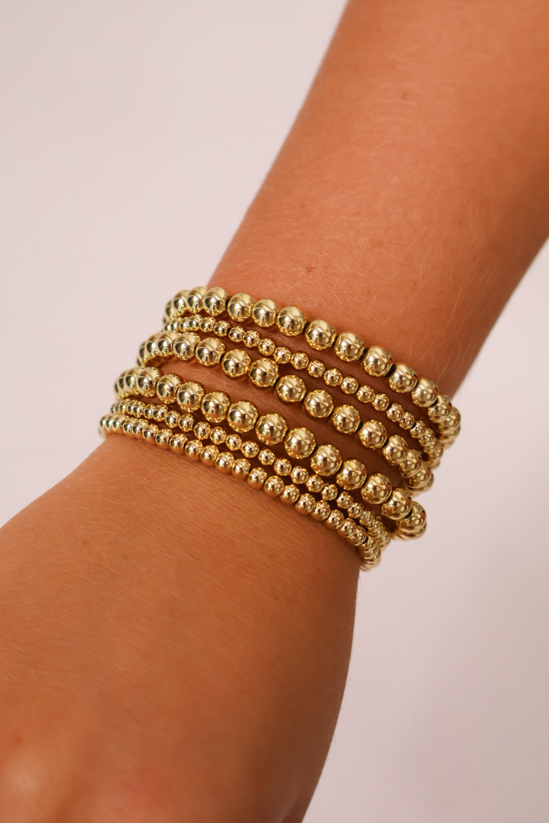 Gold Beaded Stretch Stack Bracelet – Medium + Small Beads