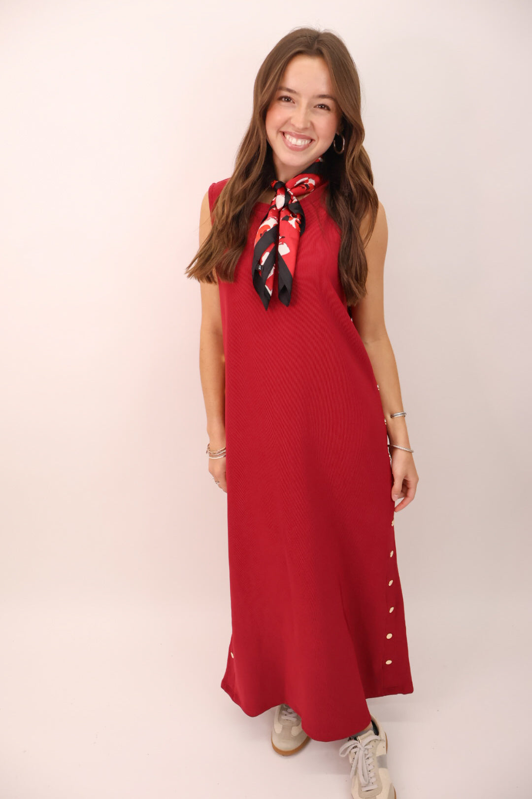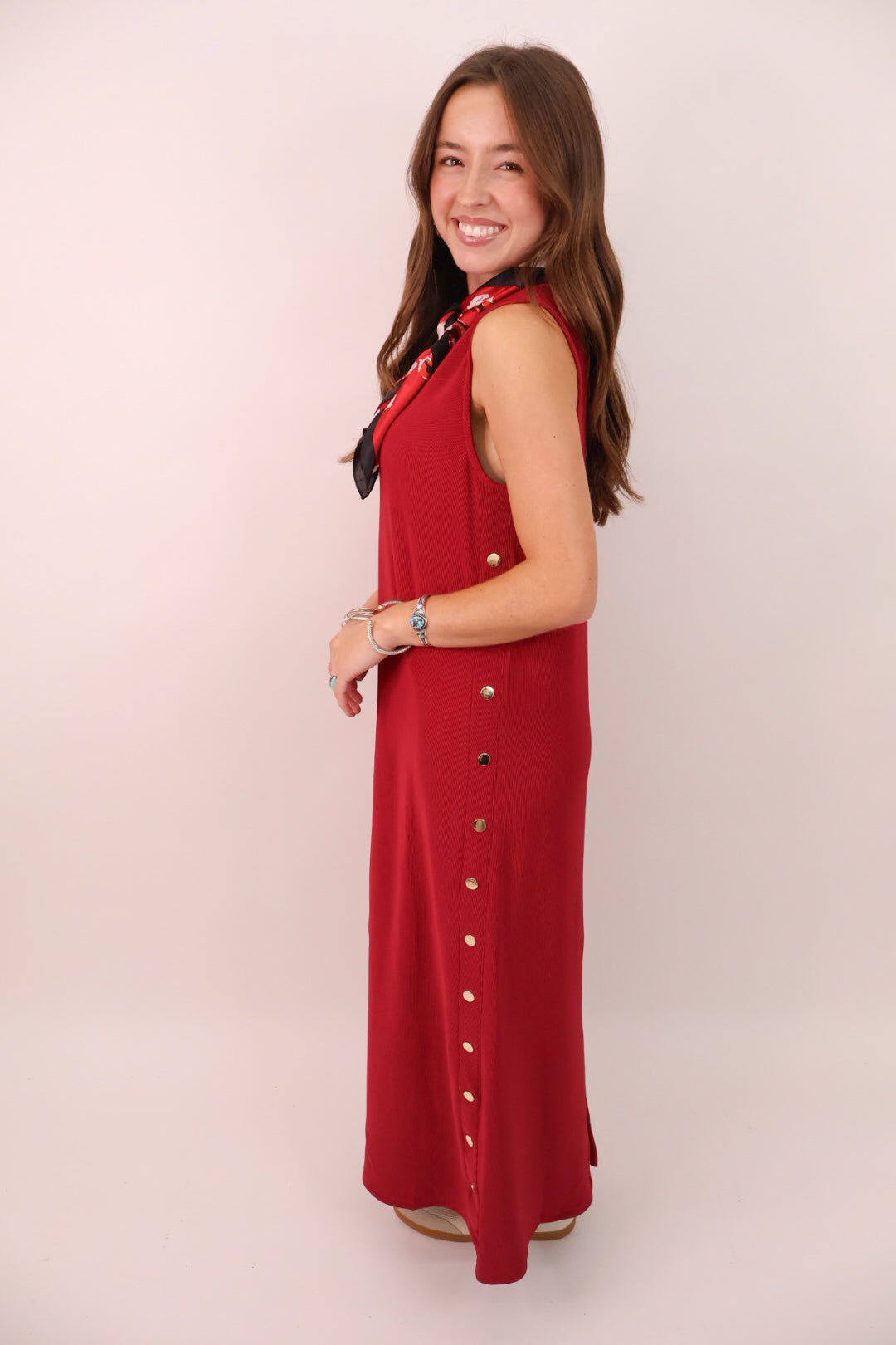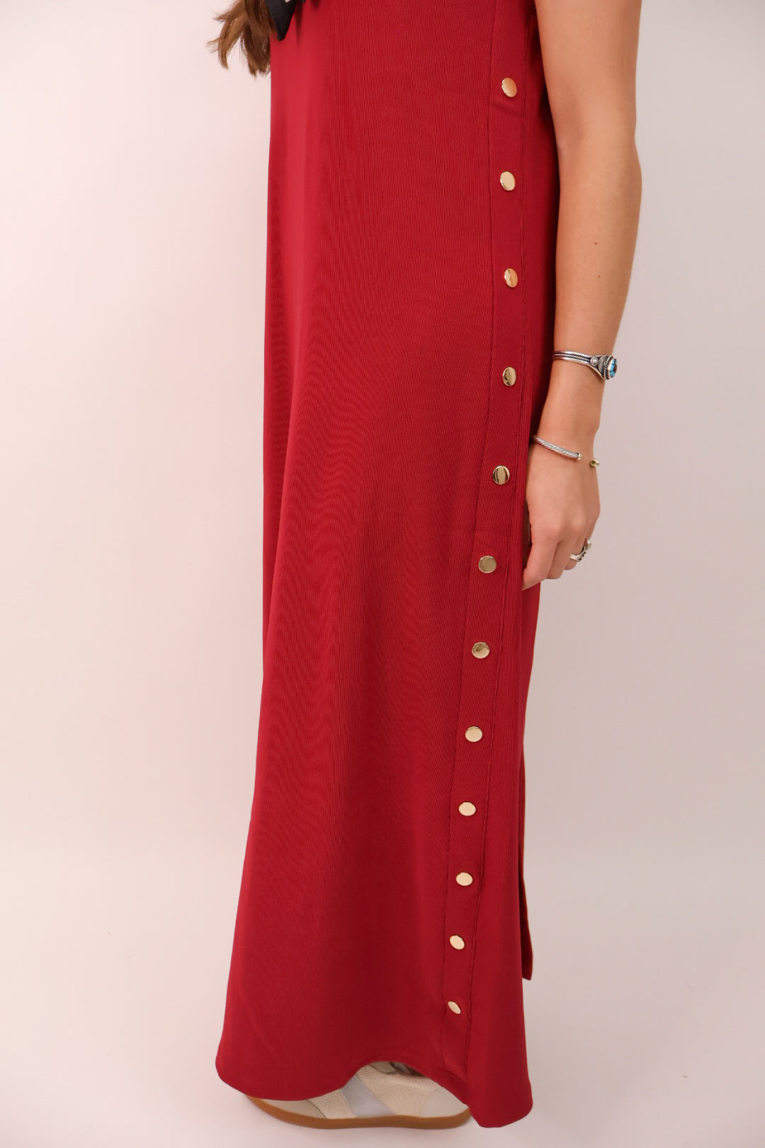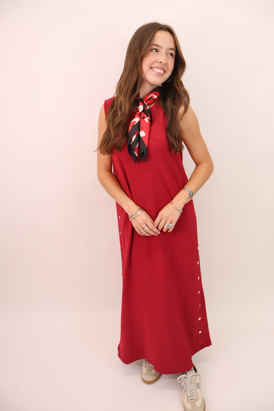 Gold Studded Sleeveless Midi Dress - Burgundy