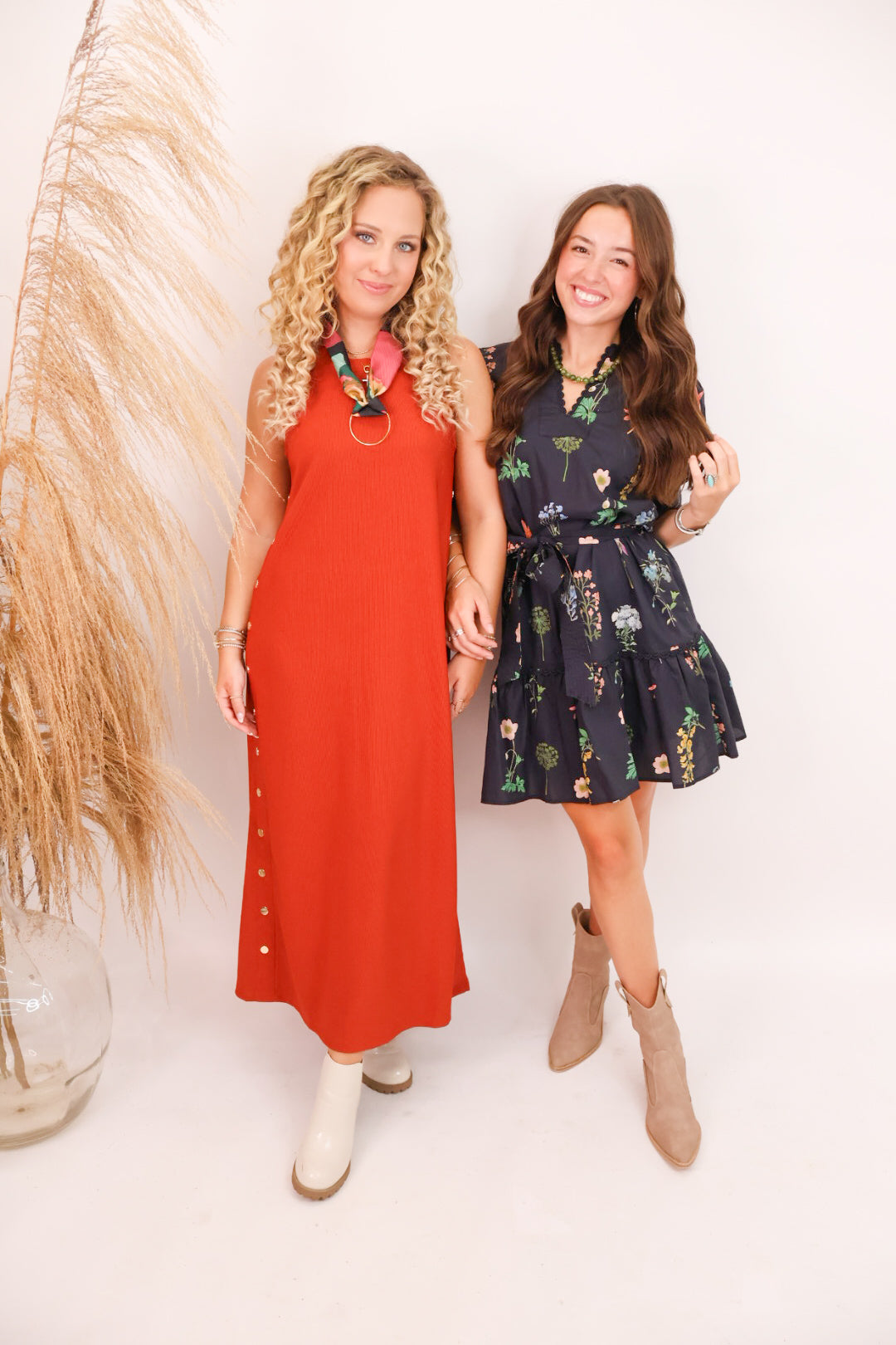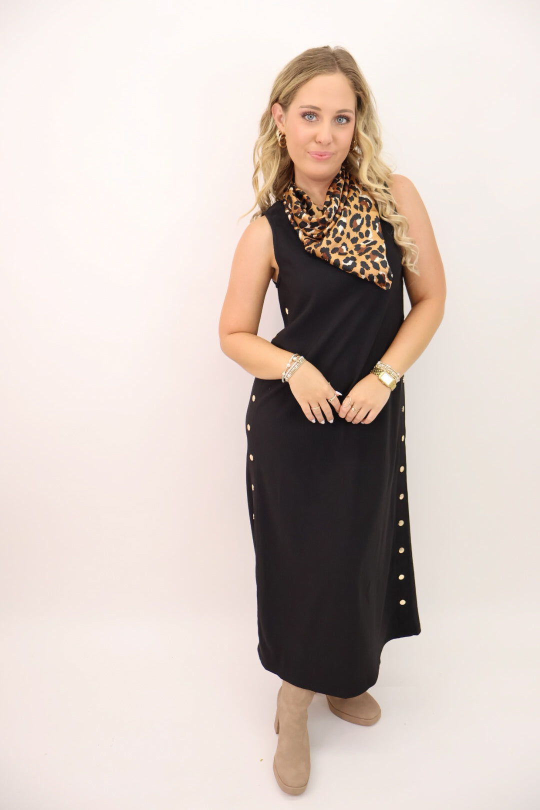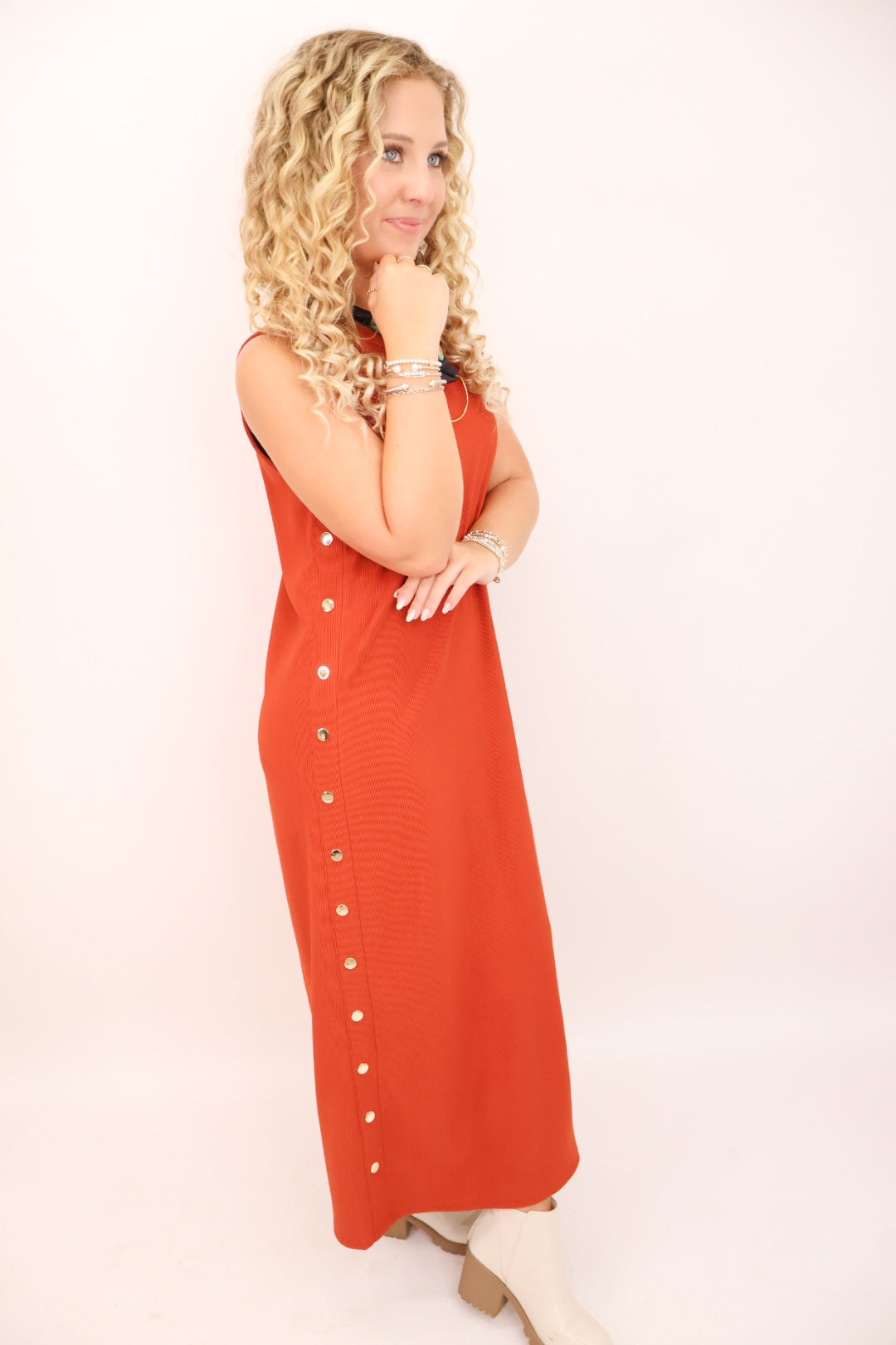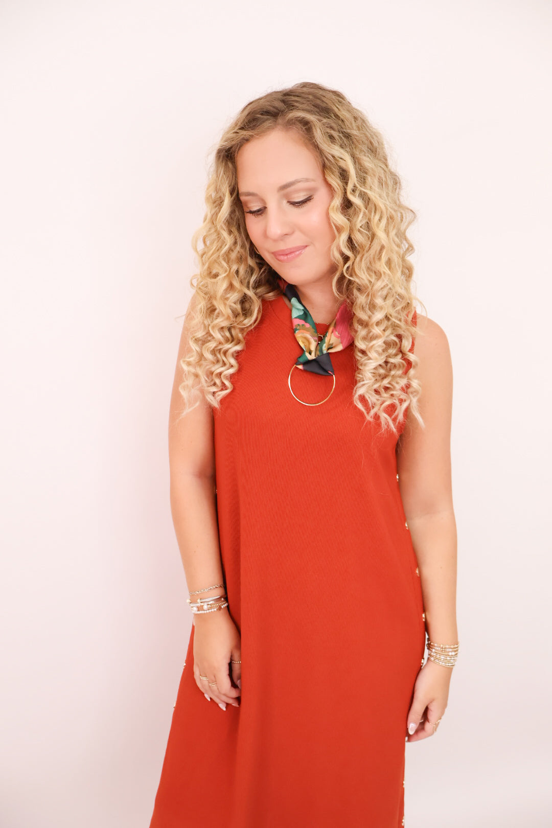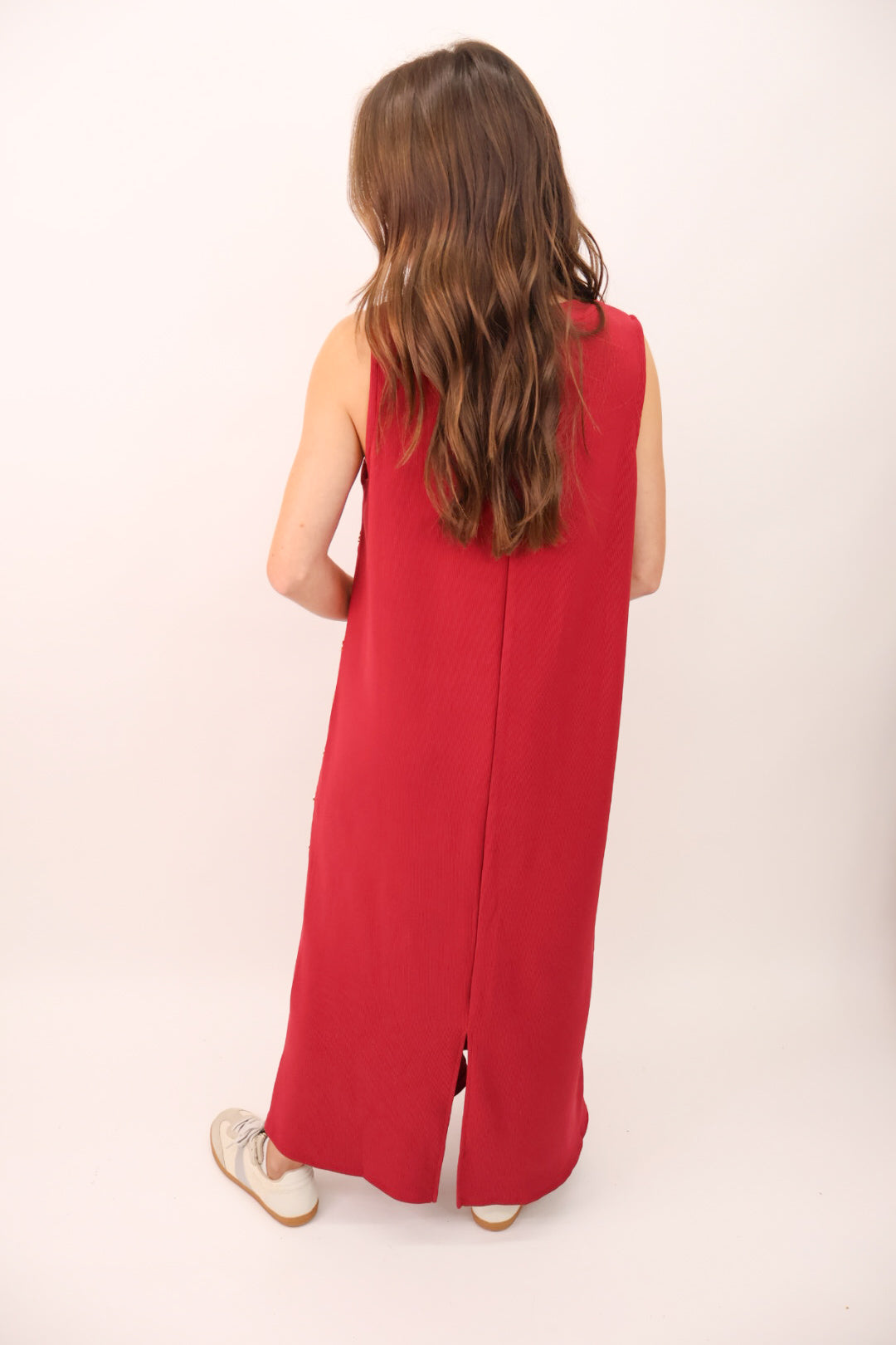 Gold Studded Sleeveless Midi Dress - Burgundy