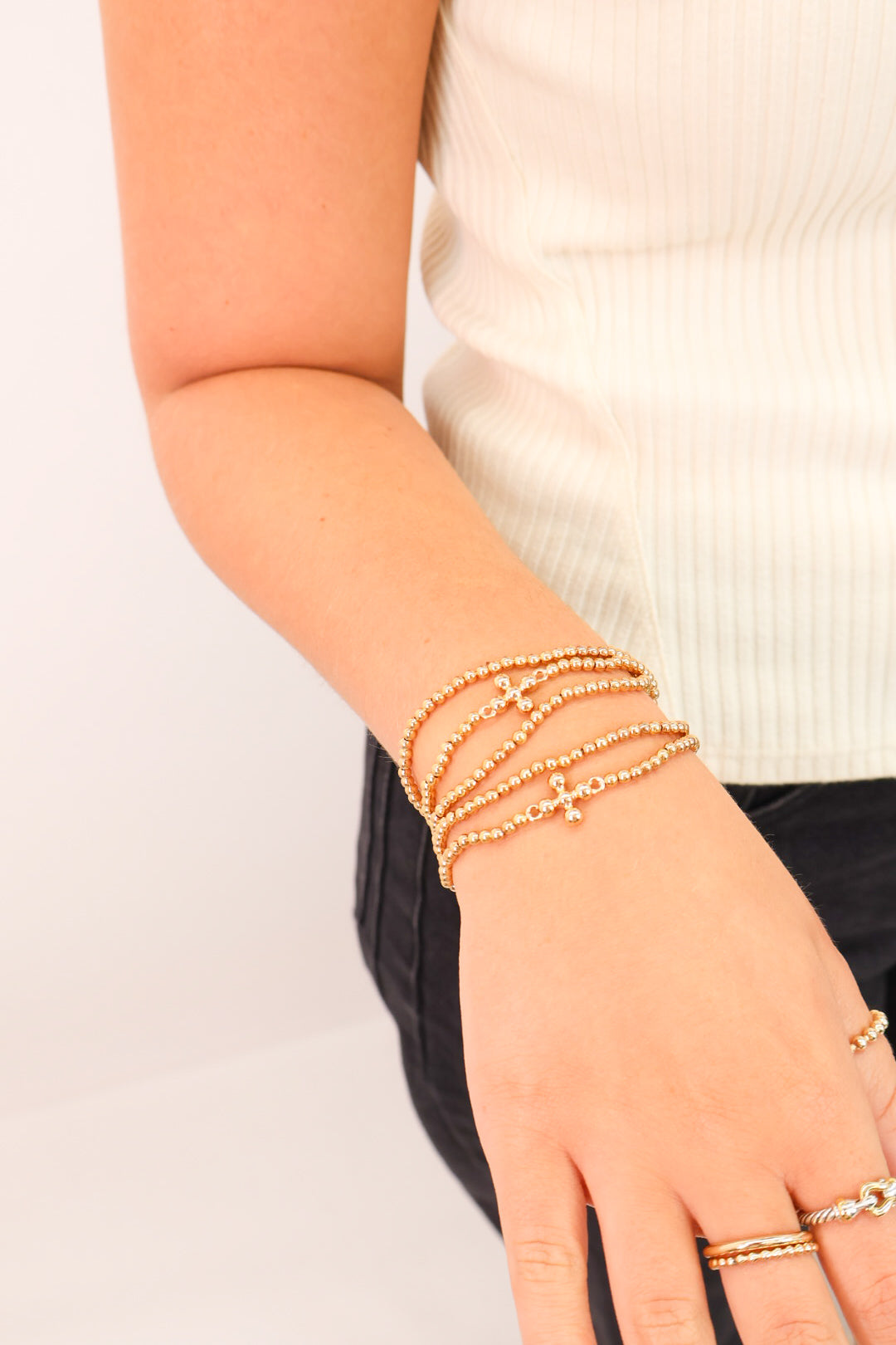 Gold Beaded Stretch Stack Bracelet – Small Beads
