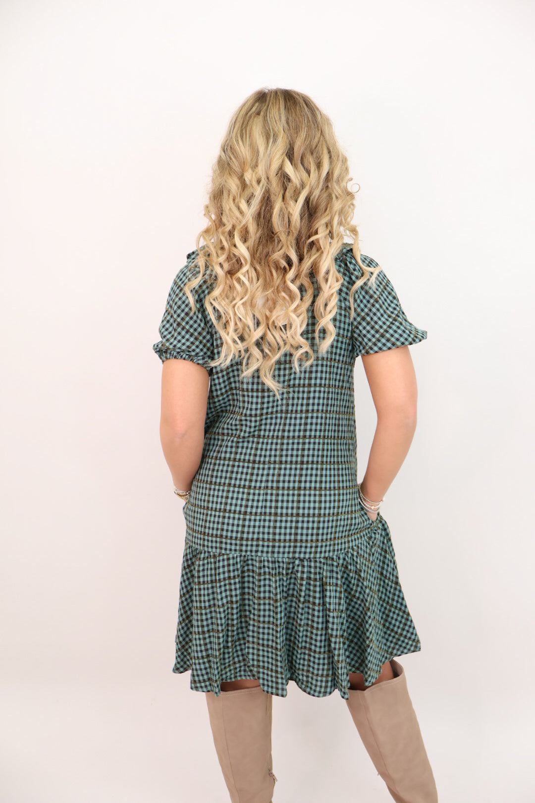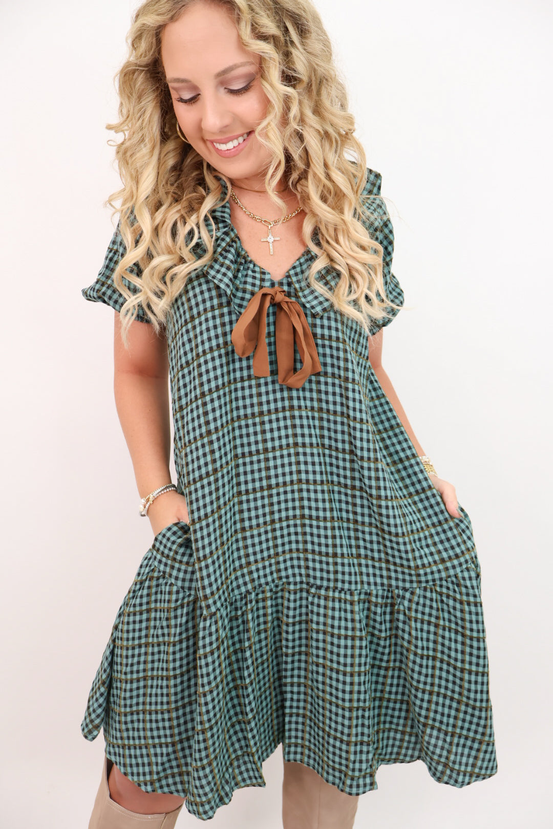 Green & Pink Floral Stripe Shoulder Tie Dress