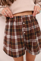 Plaid Flannel Boxer Shorts - Brown