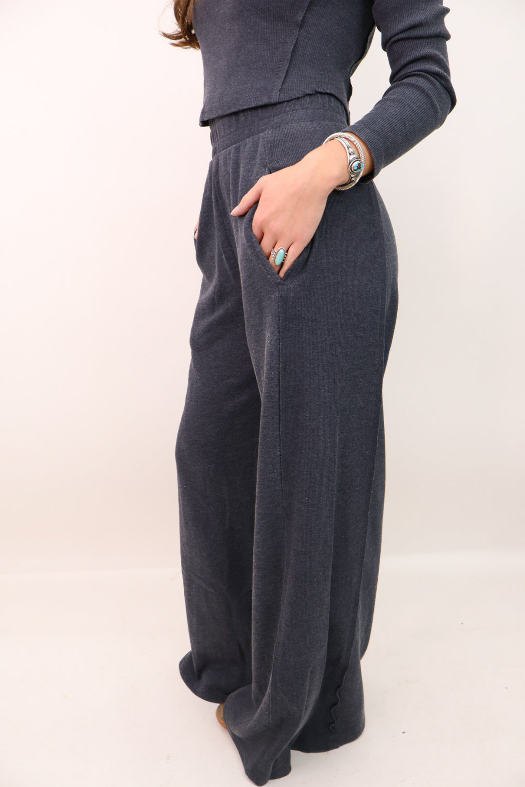 Everyday Wide Leg Pants and Top Set - Charcoal