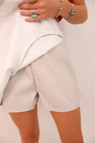 Cream Faux Leather Wrap Skort