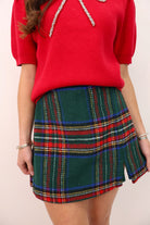 This skirt is a holiday classic! The traditional red and green plaid instantly puts you in a festive mood, and the soft, cozy fabric makes it perfect for winter wear. The mini length feels fun and flirty, while the structure keeps it looking polished. Pair it with a chunky sweater or a simple tee layered with tights — it works for everything from holiday parties to Christmas market strolls.